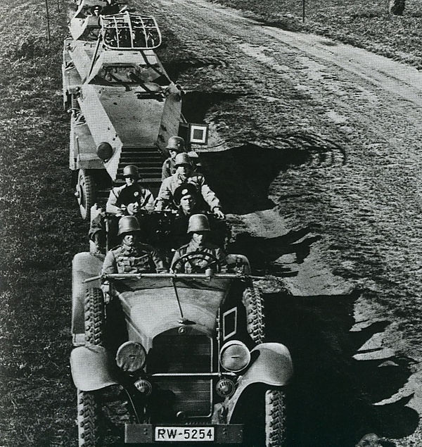 В период с 1933 по 1939 годы происходило масштабное развёртывание Вермахта. Промышленность Германии пыталась освоить массовый выпуск необходимого количества военной техники. Несмотря на все предпринимаемые усилия, к 1939 году укомплектовать танковые дивизии достаточным количеством автомобилей не получилось. К началу Второй мировой войны танковая дивизия Вермахта располагала только 2060 автомашинами. Первым бронетранспортёром для моторизованной пехоты, принятым на вооружение в тот период, стал Sd Kfz 251 на полугусеничном ходу[11][14].