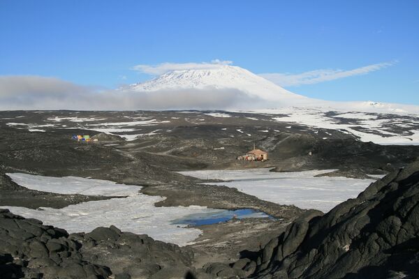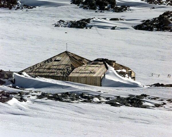 Базу основали в 23 милях к северу от зимовья Роберта Скотта — на мысе Ройдс. При разгрузке и переноске снаряжения учёные работали наравне с матросами, а после перевозки угля Моусон заснул в машинном отделении «Нимрода», положив ноги на цилиндры паровой машины[27][28]. Шеклтон был впечатлён выносливостью и энтузиазмом молодого учёного, хотя они успели поспорить из-за того, что начальник взял с собой в качестве тягловой силы десять пони и всего девять ездовых собак. Моусон утверждал, что хотя одна собака может тянуть груз немногим более собственного веса — в среднем 78 фунтов (35 кг), но эти упряжные животные не требуют объёмного корма, могут питаться мясом тюленей и пингвинов, добываемым на охоте, а также служить пищей своим товарищам по упряжке и даже людям[29].
