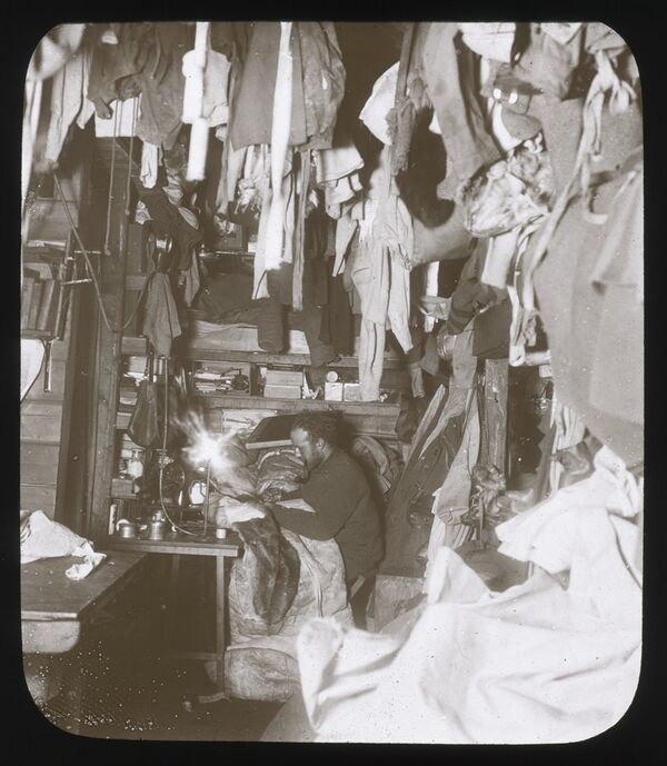 После начала полярной ночи Шеклтон основное внимание уделял подготовке к походу на Южный географический полюс и практически отдал всю научную работу на откуп Дэвиду и его коллегам. Моусон вместе с Пристли и профессором обрабатывал добытые геологические коллекции, вёл журналы состояния льда и снега, помогал при метеорологических наблюдениях, поскольку показания приборов снимались каждые два часа, замерял уровень атмосферного электричества и наблюдал за полярными сияниями. Первоначально Моусон оборудовал на веранде зимовочного дома физическую лабораторию, но потом она вся обледенела и была отведена под склад. Дуглас обосновался в фотолаборатории: хотя официальным фотографом команды был Маршалл, но оборудование и реактивы, а также плёнки и фотопластинки были привезены Дэвидом и Моусоном. Дуглас обтянул лабораторию войлоком, приладил полки и всё оборудовал. Профессор и ученик жили в одном отсеке размером 2,1 × 1,9 м. Остальные прозвали их закут «Ломбардом», поскольку всё свободное место было занято фотоаппаратами, спектроскопом, термометрами, электрометрами, штангенциркулями и прочим. Шеклтон утверждал, что «профессор Дэвид… нагромождал блестящие консервные банки и разноцветные соломенные обёртки в углу своей койки, что придавало ей некоторое сходство с гнездом австралийского ткача»: геологические образцы учёные заворачивали в солому. На зимовке выпускался печатный журнал Aurora Australis, в котором Моусон поместил своё единственное художественное произведение: рассказ «Батибия» о том, что покорители Южного полюса обнаружили в этом регионе гигантские грибы. Дэвиду и Моусону, как самым выдержанным, нередко приходилось мирить зимовщиков. Например, 3 августа повар Робертс встал ногой на ящик Маккея, который схватил Робертса за горло. Моусон силой водворил шотландца на койку, и инцидент не получил продолжения[33][34].