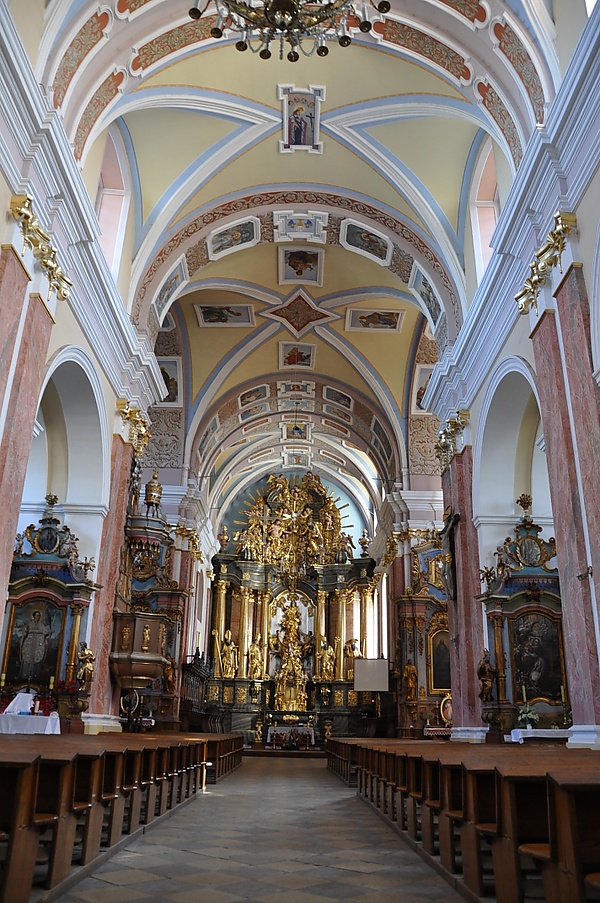 После пожара храма в 1702 году совет монастыря принял решение о строительстве нового, который был завершён в 1742 году. За несколько лет до завершения строительства во время религиозных торжеств треснули колонны нефа южной стороны, в результате чего обрушились перекрытия и часть стен. Погибли по меньшей мере три человека. Кроме того, пожары в монастыре были в 1776, 1800 и 1879 годах, также разрушения наносили русские войска в 1709 и в 1768 годах и прусские — в 1789 и 1793 годах. Каждый раз храм заново отстраивался.