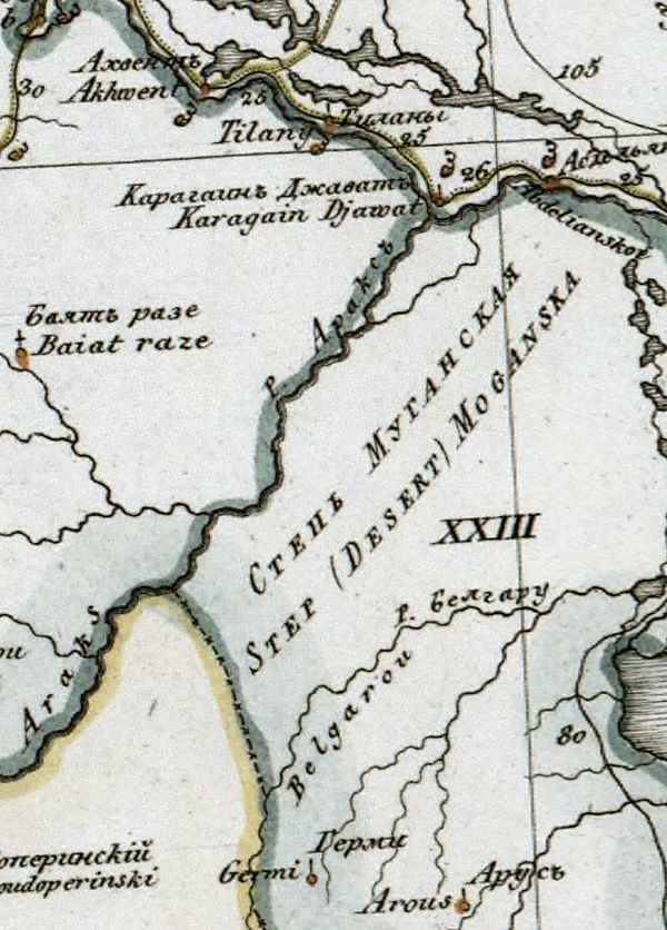 В 1684 году немецкий путешественник Кемпфер сообщал, что Мугань населяют люди, пришедшие из Турции[4]. В XVIII веке в Мугани кочевали шахсевены.
