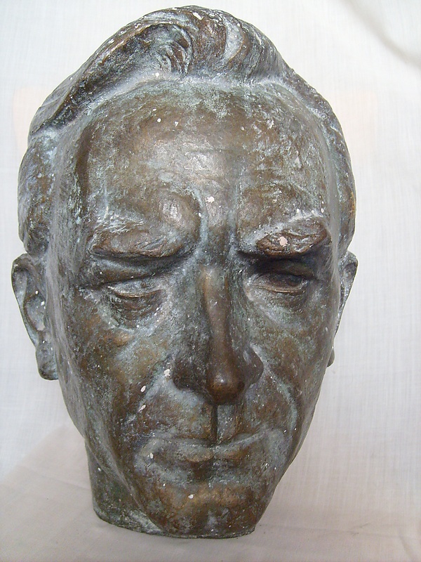 Скульптура выполнена из бронзы и имеет полую конструкцию внутри. На голове прослеживаются характерные черты лица мужчины средних лет. Лоб высокий и покатый, с небольшими залысинами по краям. Волосы коротко острижены, с пышным чубом, зачёсанным вверх и вправо. Нос прямой, губы сомкнуты, а подбородок квадратный с ямочкой. Линия шеи под подбородком прямая. Дополнительное внимание уделено глубоким носогубным складкам и складкам на переносице, а также на щеках. Основание бюста содержит отверстие для крепления.