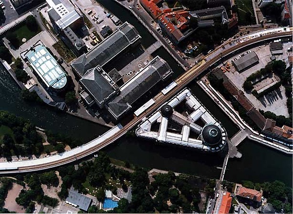 Северную оконечность «Музейного острова» пересекает мост Монбижу, соединяющий остров с обоими берегами Шпре. Оба моста закрыты для движения общественного транспорта и образуют вход в Музей Боде, здание треугольной формы в стиле необарокко, огромный купол которого возвышается над северной частью Шпреинзель.