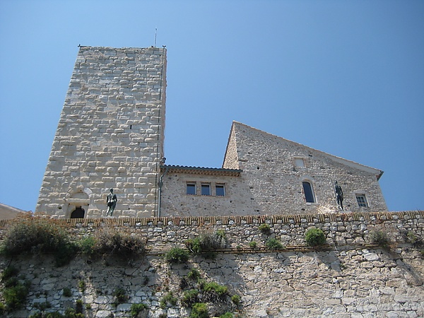 Башня, находящаяся в замке, была построена в конце XI века, как и башня в Каннах. Она представляет собой свидетельство существования каструма Антиполитани. Башня имеет квадратное сечение со стороной 6,5 метра и высоту 25 метров. В основании башни использованы обработанные камни, взятые из римских памятников. Первоначальная дверь была увенчана монолитной притолокой, поддерживавшей тимпан и полуциркульную разгрузочную арку. Как и у всех романских донжонов, дверь находилась на высоте, чтобы в помещение первого этажа можно было попасть только по съёмной лестнице. На первом этаже не было окон. Сюда можно было попасть только через люк в полу второго этажа. На второй этаж вели ступени, встроенные в стены на каменных кронштейнах.