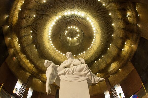 Зал увековечивает память более 26 миллионов 600 тысяч советских граждан, погибших и пропавших без вести. Потолок украшают 2 миллиона 660 тысяч бронзовых цепочек с подвесками из горного хрусталя: каждое звено символизирует 10 погибших солдат и мирных жителей[10].