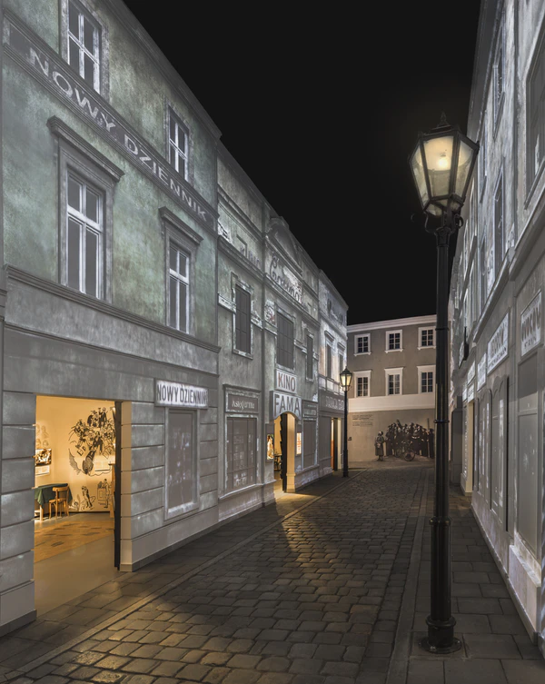 - На еврейской улице — экспозиция рассказывает о независимой Польше межвоенного периода, который считают вторым золотым веком для евреев страны. Выставка также освещает еврейские кинематограф, театр и литературу.