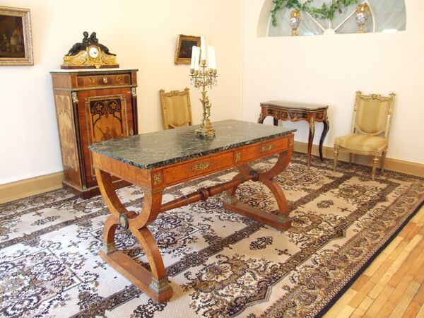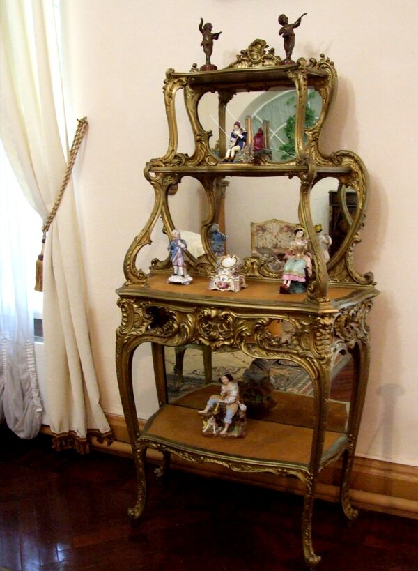 В гостиной, куда гости переходили после обеда, расставлена антикварная мебель XVIII—XIX веков, а также этажерки с зеркальными стенками. Многие дворянские семьи увлекались коллекционированием статуэток, поэтому зеркало было необходимо для отражения задней поверхности фигурок.