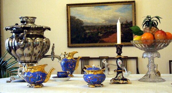 В столовой представлен обеденный стол, где каждому гостю выделялось по 80 сантиметров личного пространства. Стол сервирован посудой XIX века. По традиции перед каждым приёмом пищи глава семейства обдумывал сценарий беседы — для этого в гостиной лежали свежие газеты и журналы. Возле столовых приборов расположены визитные карточки, обмен которыми являлся неотъемлемой частью званых обедов того времени.