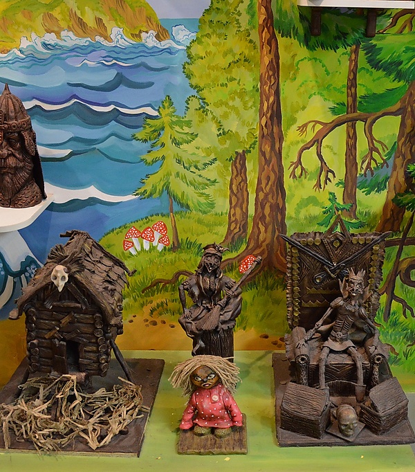 Все демонстрируемые экспонаты сделаны из шоколада руками мастеров. В экспозиции представлены сюжеты известных картин, узнаваемые персонажи сказок, мультфильмов, фигуры и статуэтки из шоколада: «Шоколадница», «Алиса в Стране чудес», всего более 70 экспонатов.[6]