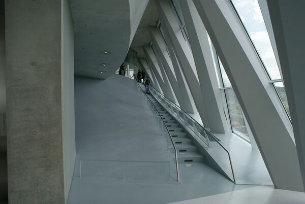 Здание было спроектировано таким образом, чтобы занимать минимум площади при максимальном использовании пространства: на 16 500 квадратных метров выставочного пространства площадь занимаемой земли составляет лишь 4800 квадратных метров. Девять этажей, которые с улицы выглядят как три, созданы на базе двух пересекающихся спиралей пандусов.