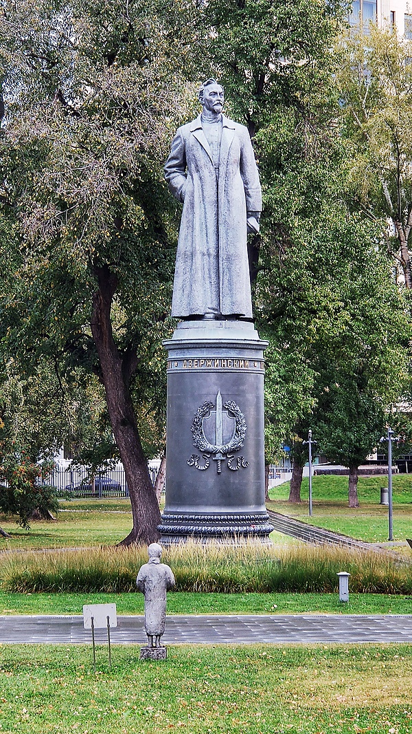 Памятник Феликсу Дзержинскому — работа скульптора Евгения Вучетича и архитектора Григория Захарова, который воздвигли в 1958 году на Лубянской площади. 22 августа 1991 года после провала ГКЧП памятник весом 11 тонн свергли с постамента, вывезли с площади и бросили рядом с Центральным домом художника, который является частью Третьяковской галереи и соседствует с Музеоном[16].