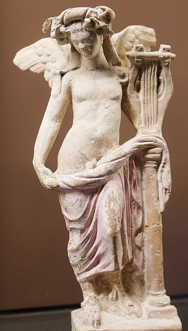 - Лира — согласно мифу была изготовлена Гермесом из панциря черепахи и подарена Аполлону. Имела плоский округлый корпус с кожаной мембраной, от 3 до 11 жильных, кишечных, льняных или конопляных струн. Лира как носитель культа Аполлона противопоставлялась духовому авлосу, связанному с культом Диониса.