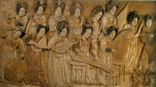 В этот период развивается традиция оркестров большого состава — от 300 до 800 исполнителей, инструменты в которых делились на 8 групп по материалу изготовления. Подобные оркестры сохраняли важную роль на протяжении всей дальнейшей эволюции китайской музыки. В это же время складывается традиция сольного исполнительства на струнных инструментах — цине (особо в кругах учёной элиты) и пипе, в искусстве игры на которой сложилось несколько исполнительских школ (школы Су Чжипо, Цзи Ли, Ли Яньняня и др.)