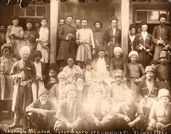 Из российских источников 1911 г. Сообщается также, что население исследуемого горного района Чечни разбивается на несколько групп, имеющих различные местные наименования, происхождение которых относится к очень далеким временам. Так есть «Чантинцы» или «Итумцы», «Хачарой», «Дзумсой», «МУЛКОЙ», «Шарой», «Макажой» и проч.[13].