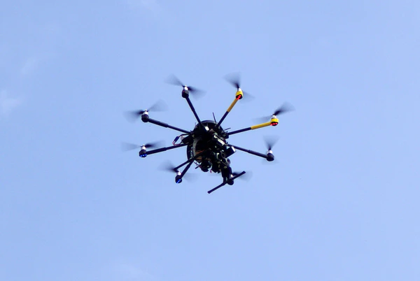 Мультикоптеры удобны для недорогой аэрофото- и киносъёмки — громоздкая камера вынесена из зоны действия винтов.