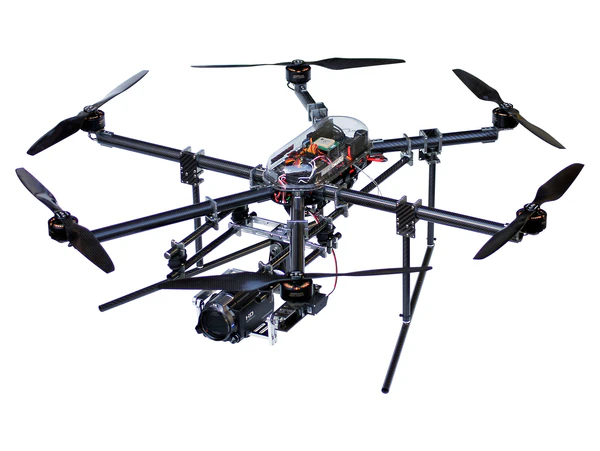 Поднимаемый полезный груз моделями мультикоптеров среднего размера и грузоподъёмности — от 500 г до 2—3 кг, что позволяет поднять в воздух небольшую фото или видеокамеру (обычно экшн-камера в более дешёвых моделях, либо зеркальные камеры в профессиональных). Существуют и достаточно крупные модели мультикоптеров, с количеством роторов порядка 6—8 (гекса- и октокоптеры), способные поднять в воздух груз массой до 20—30 кг. Для увеличения грузоподъёмности применяют соосное расположение несущих роторов, что в случае гексакоптера, например, даёт 12 моторов и 12 пропеллеров, расположенных попарно на 6 несущих лучах.