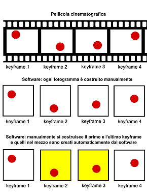 В традиционной мультипликации ключевые кадры обычно рисуются ведущими аниматорами, в то время как промежуточные кадры исполняются ассистентами-аниматорами (интеркалаторами). В компьютерной анимации аниматор также определяет только ключевые кадры, а операция интерполяции выполняется автоматически программным обеспечением. Этот подход, называемый keyframing (кейфрейминг, анимация по ключевым кадрам), применяется к изменениям движения, формы (зачастую с использованием так называемых «shape hints», или «подсказок формы»[1]) и цвета.