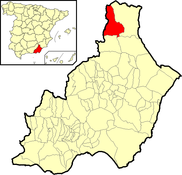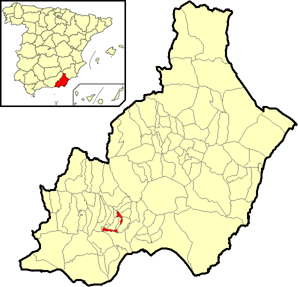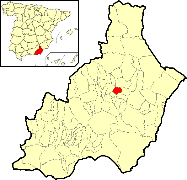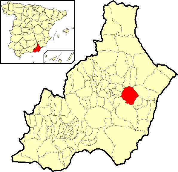 На административной карте провинции Альмерия указано расположение центров её муниципалитетов.