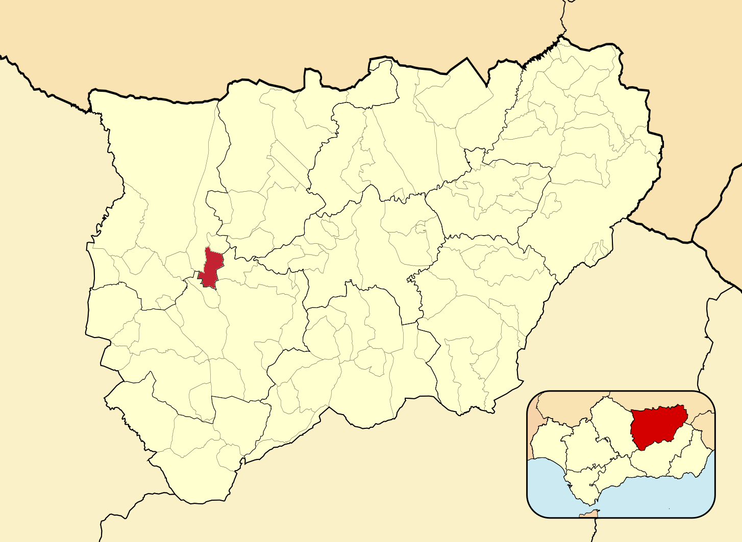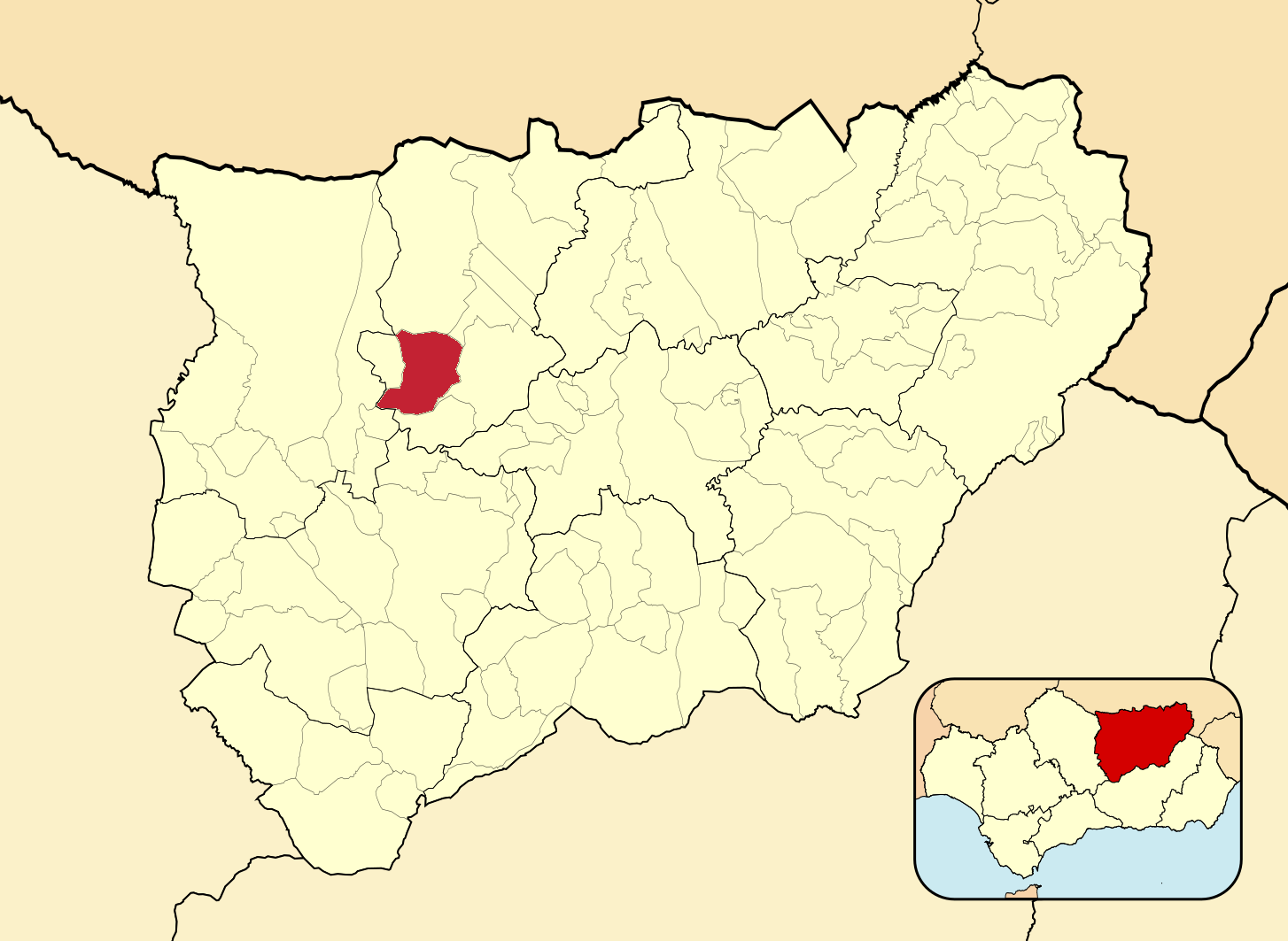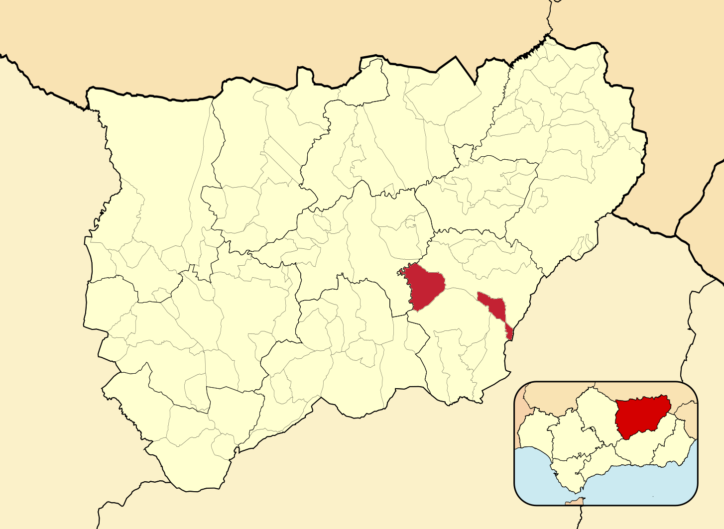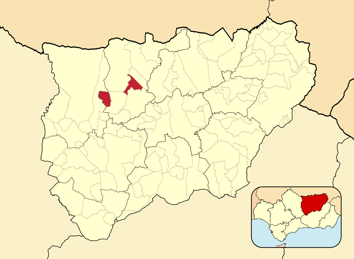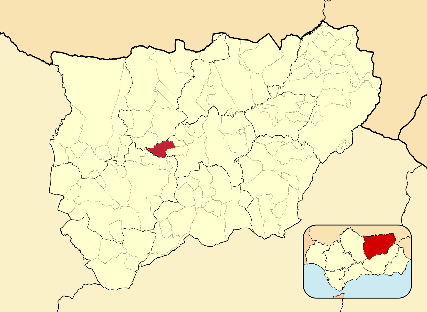 Муниципалитеты провинции Хаэн на административной карте провинции