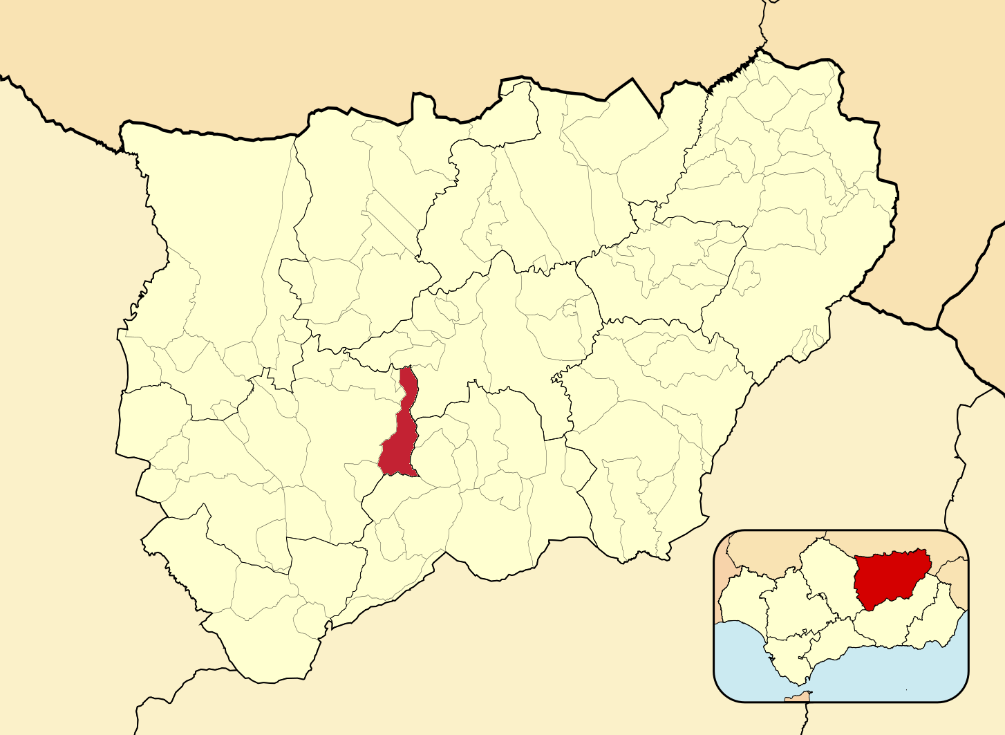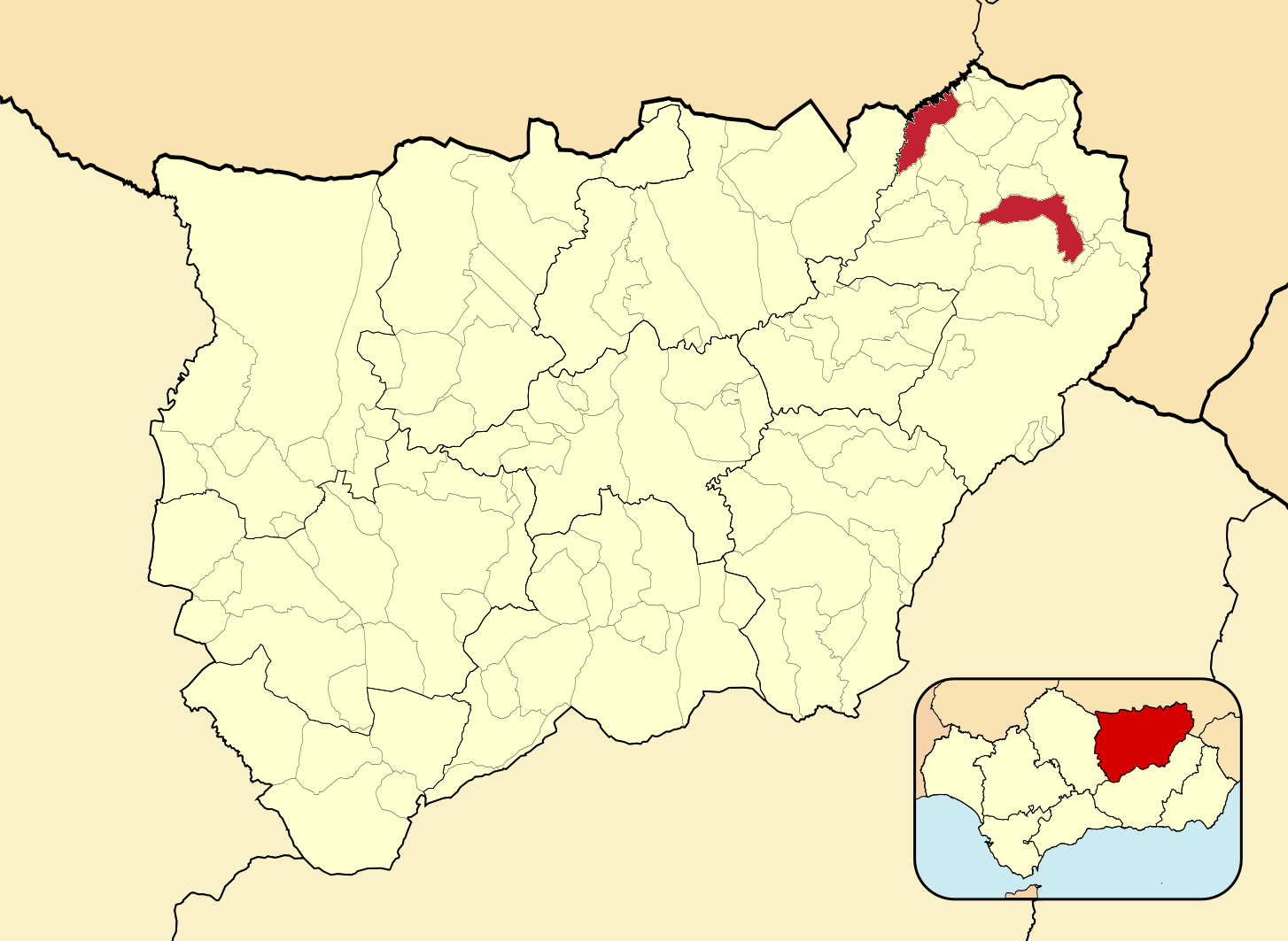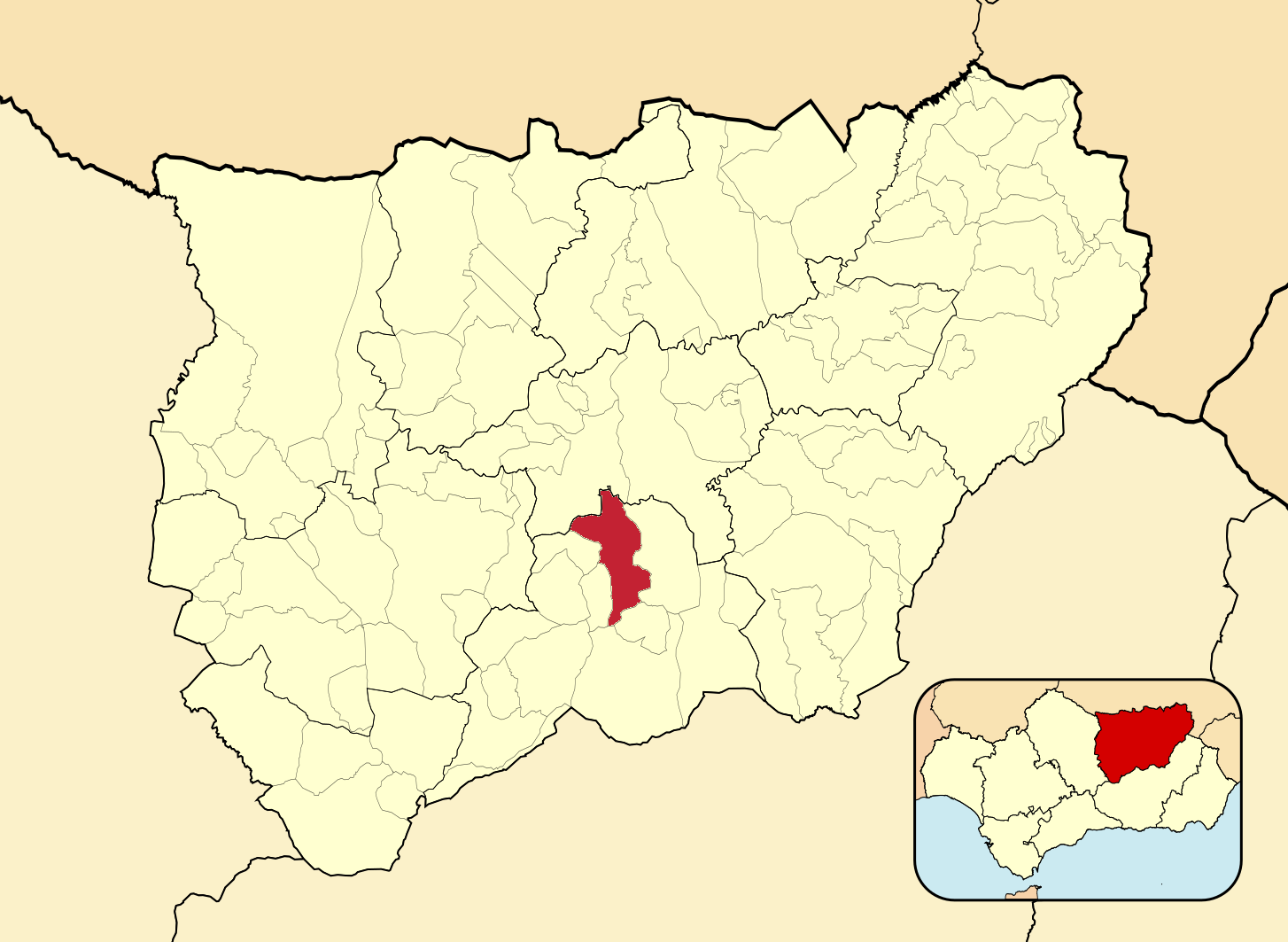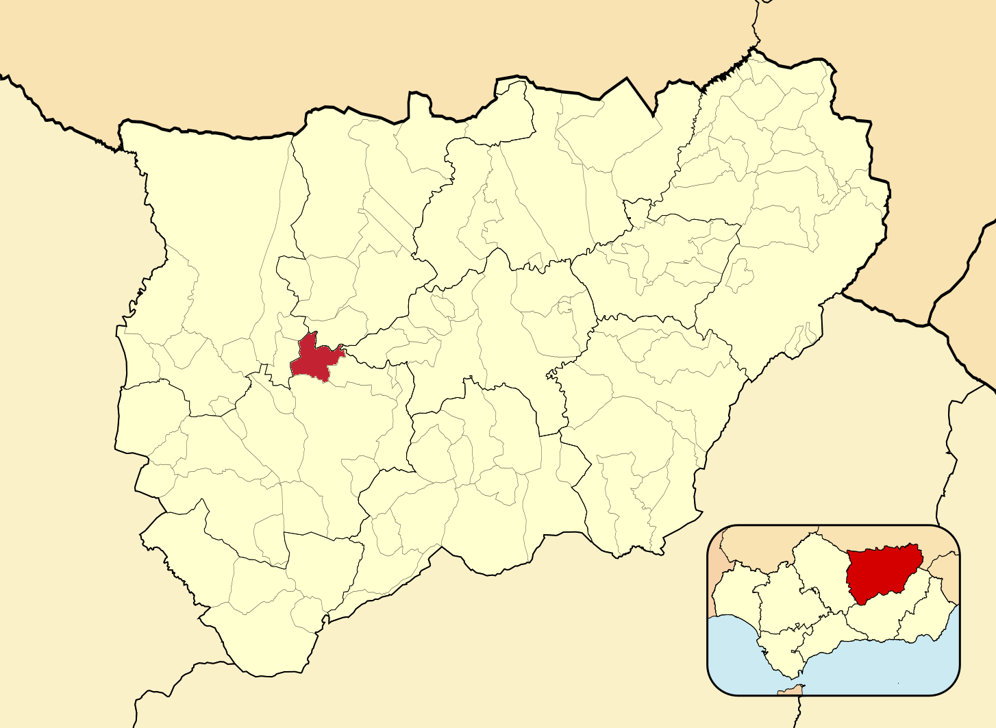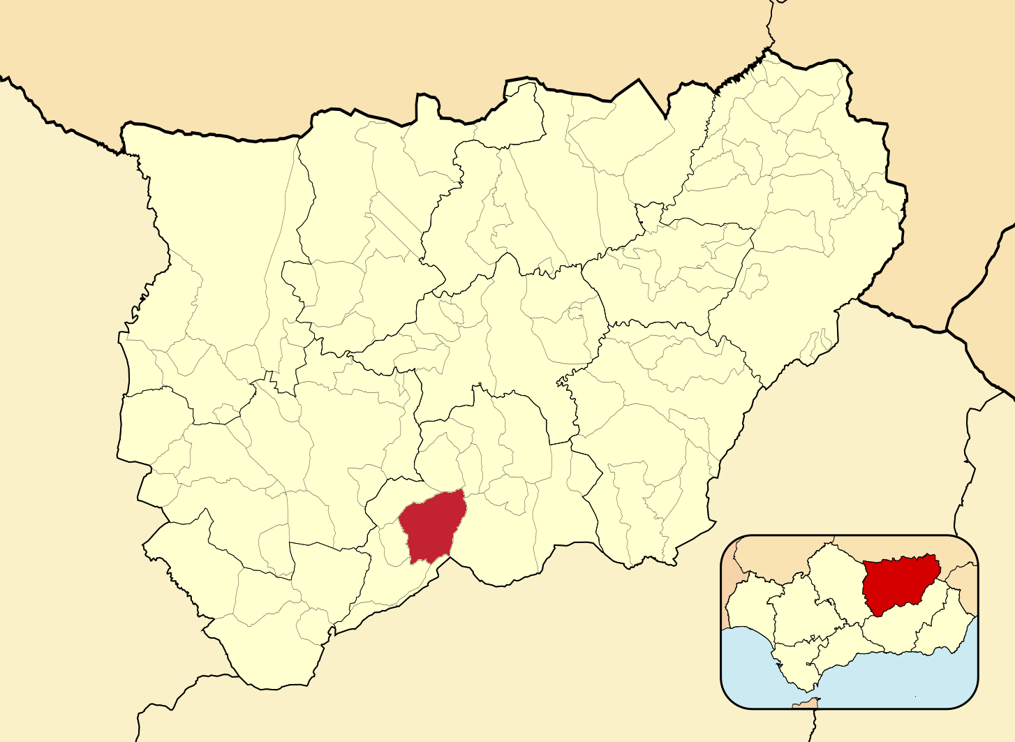 Муниципалитеты провинции Хаэн на административной карте провинции