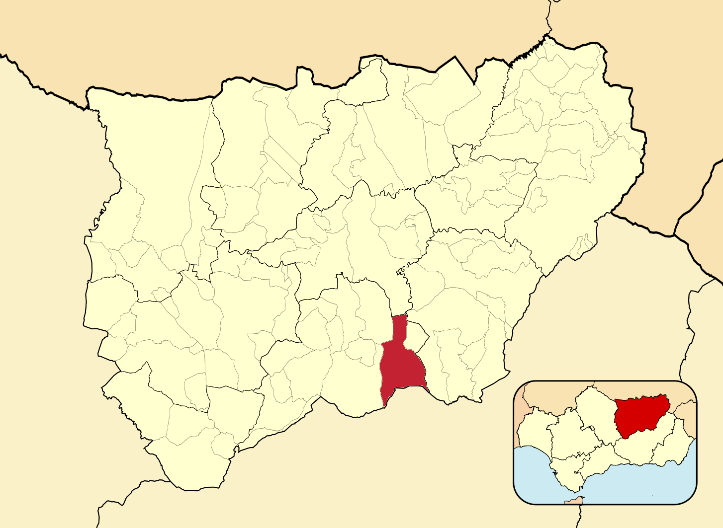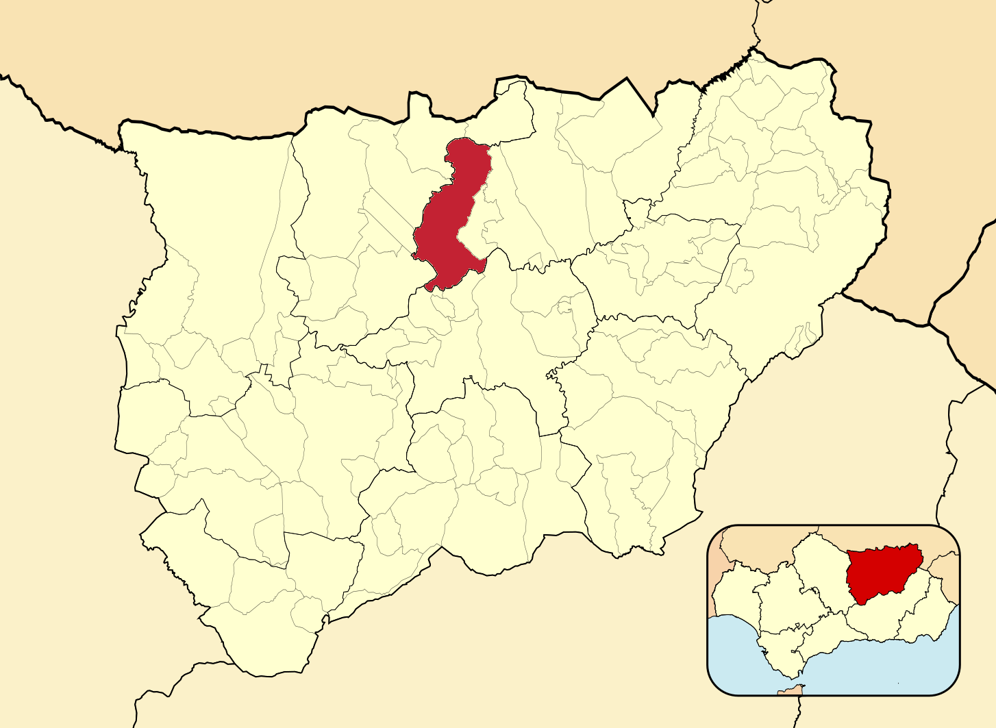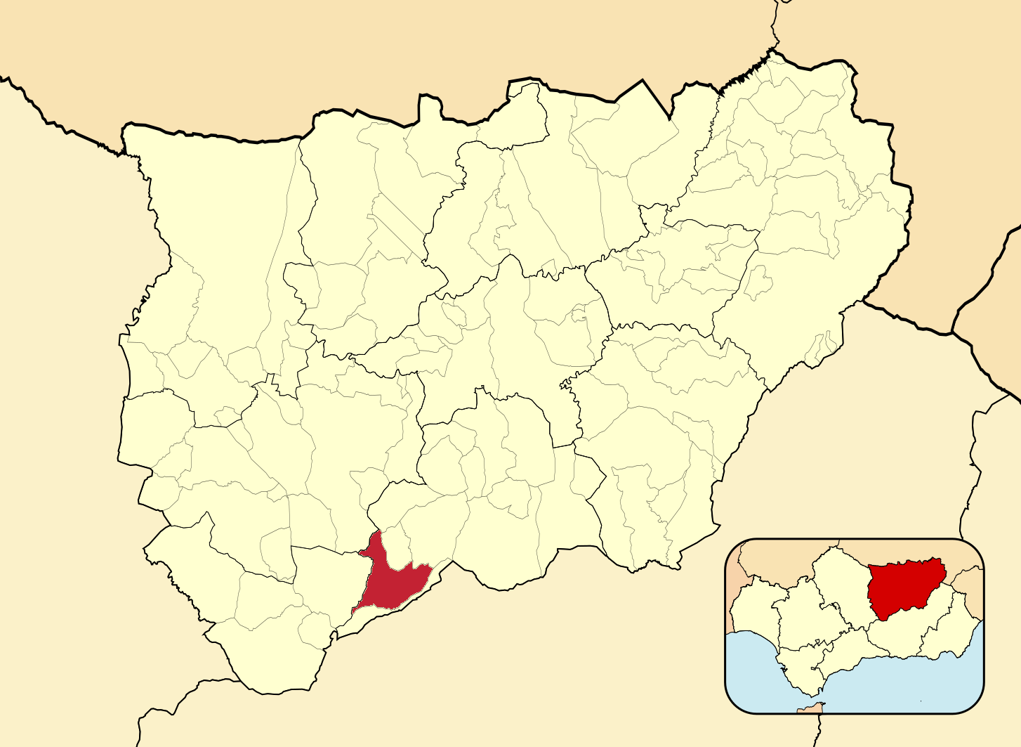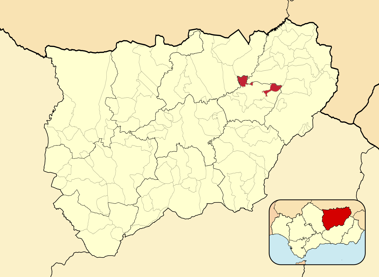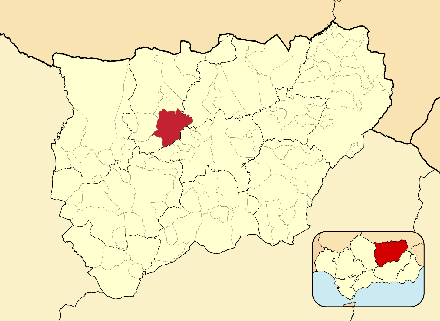 Муниципалитеты провинции Хаэн на административной карте провинции