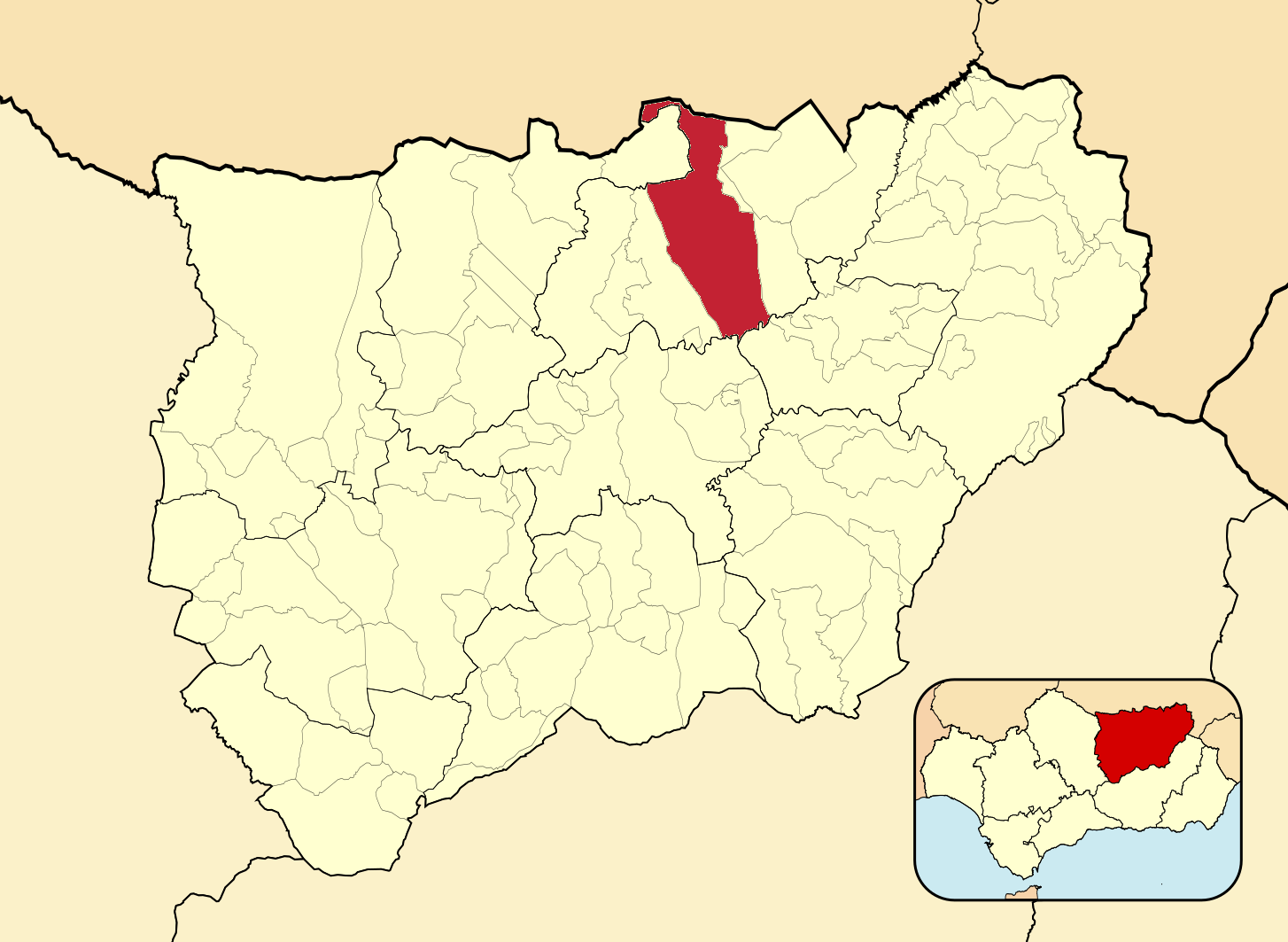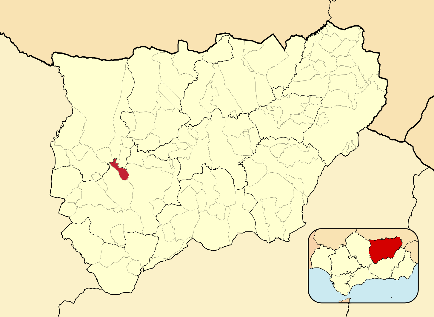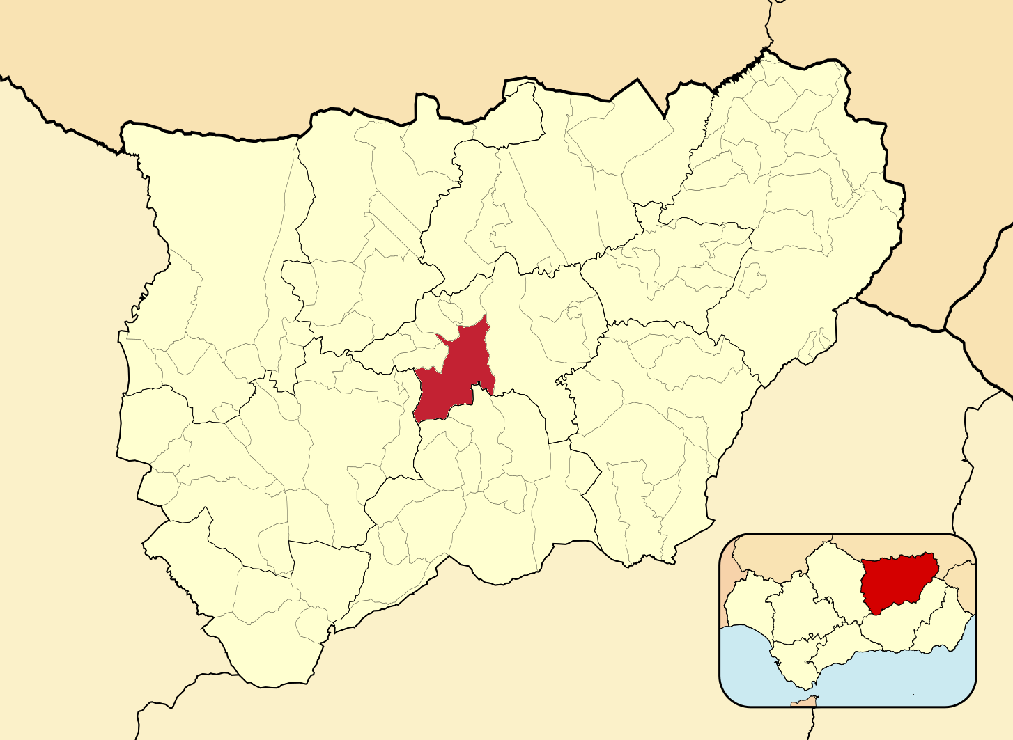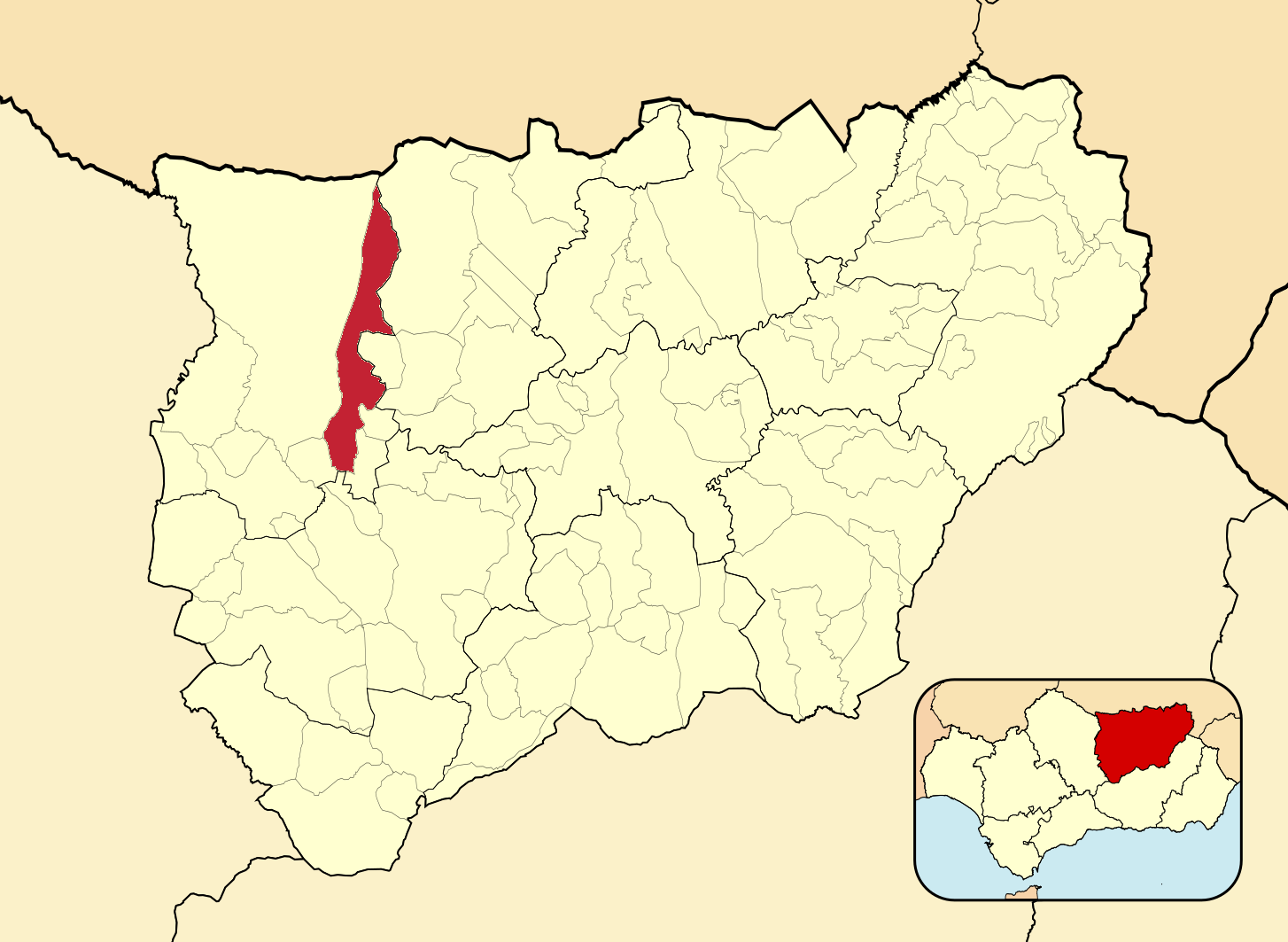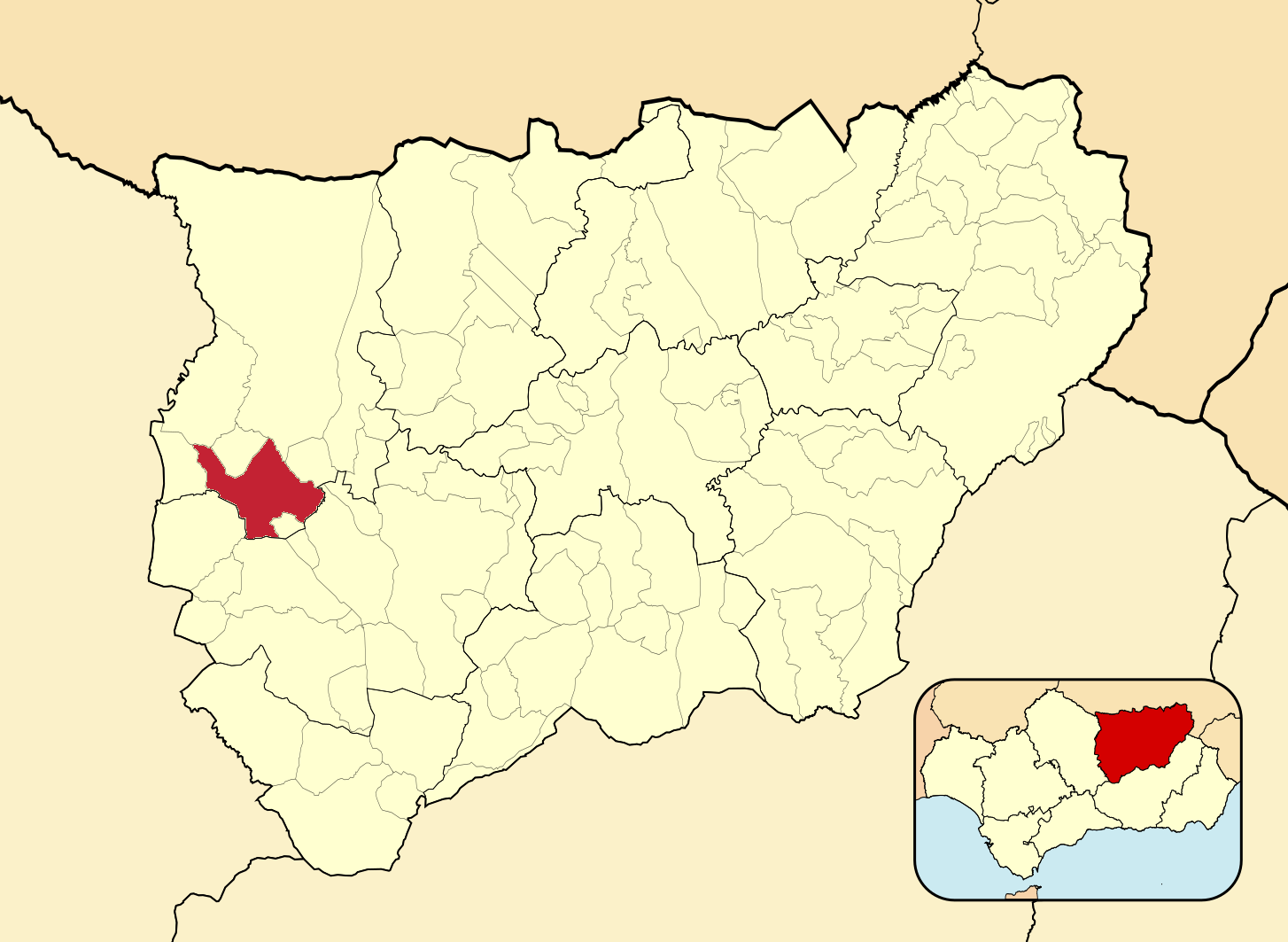 Муниципалитеты провинции Хаэн на административной карте провинции