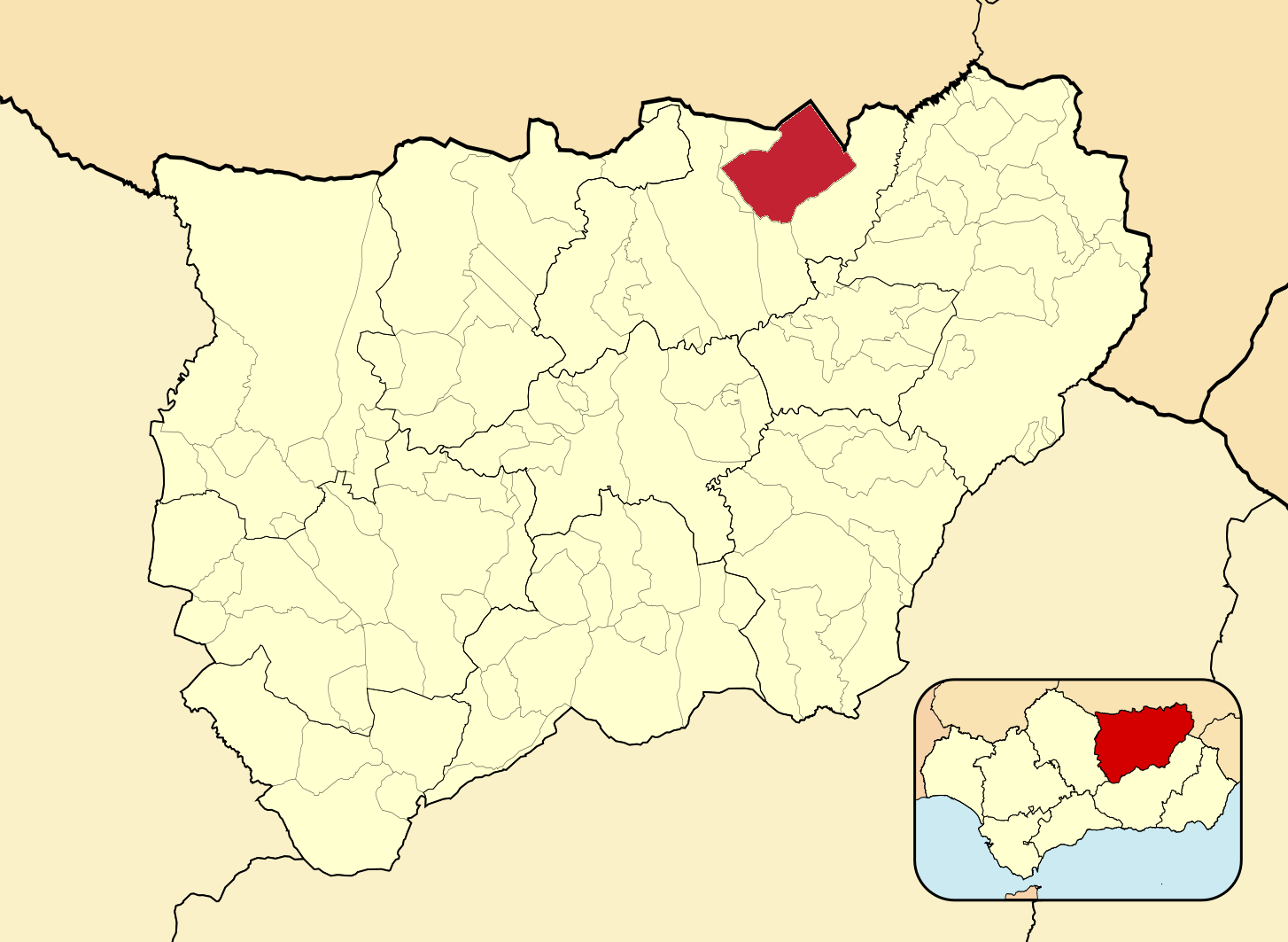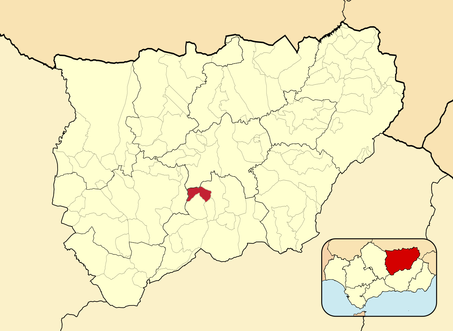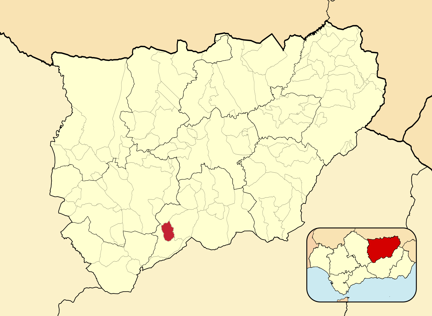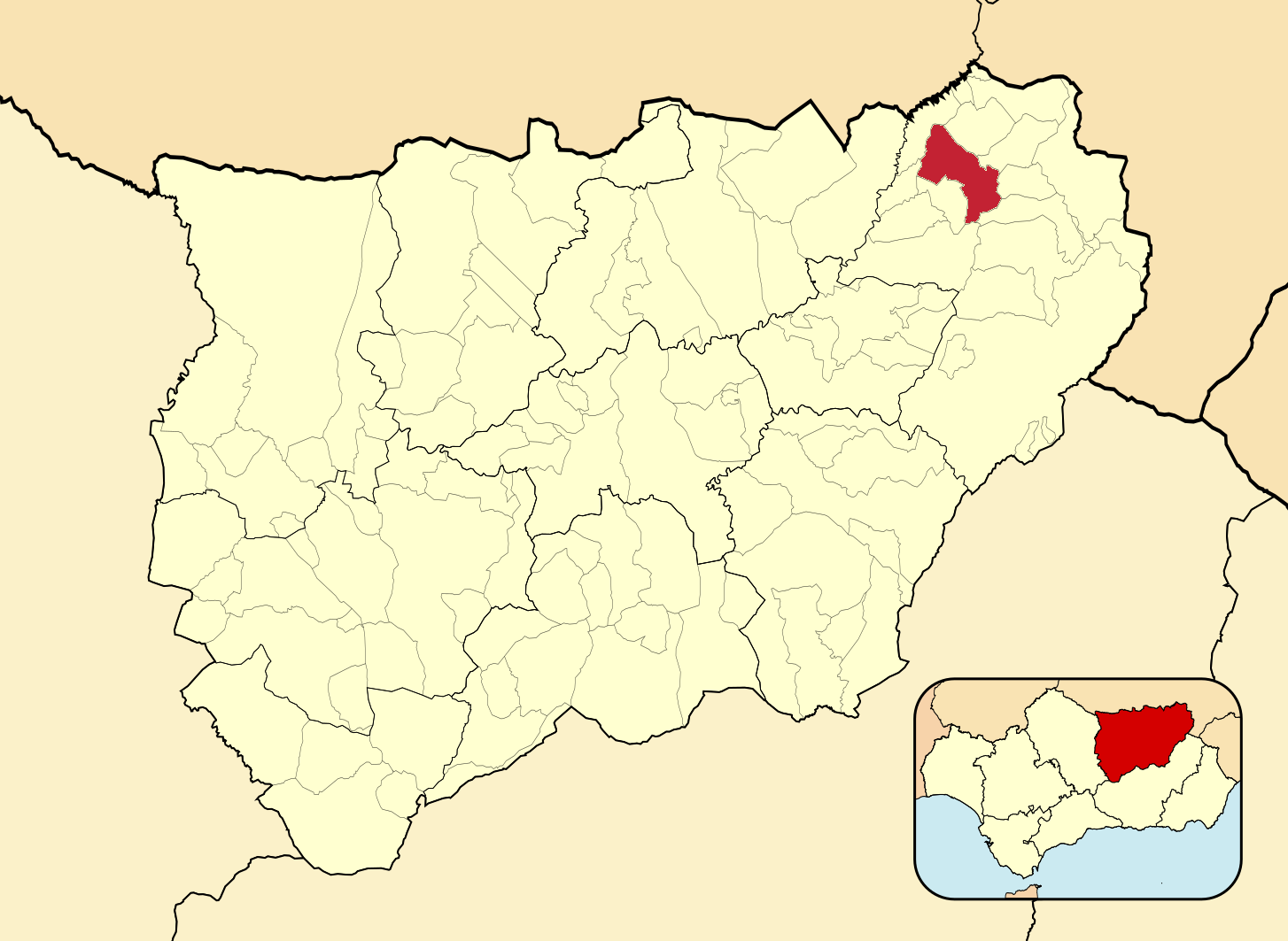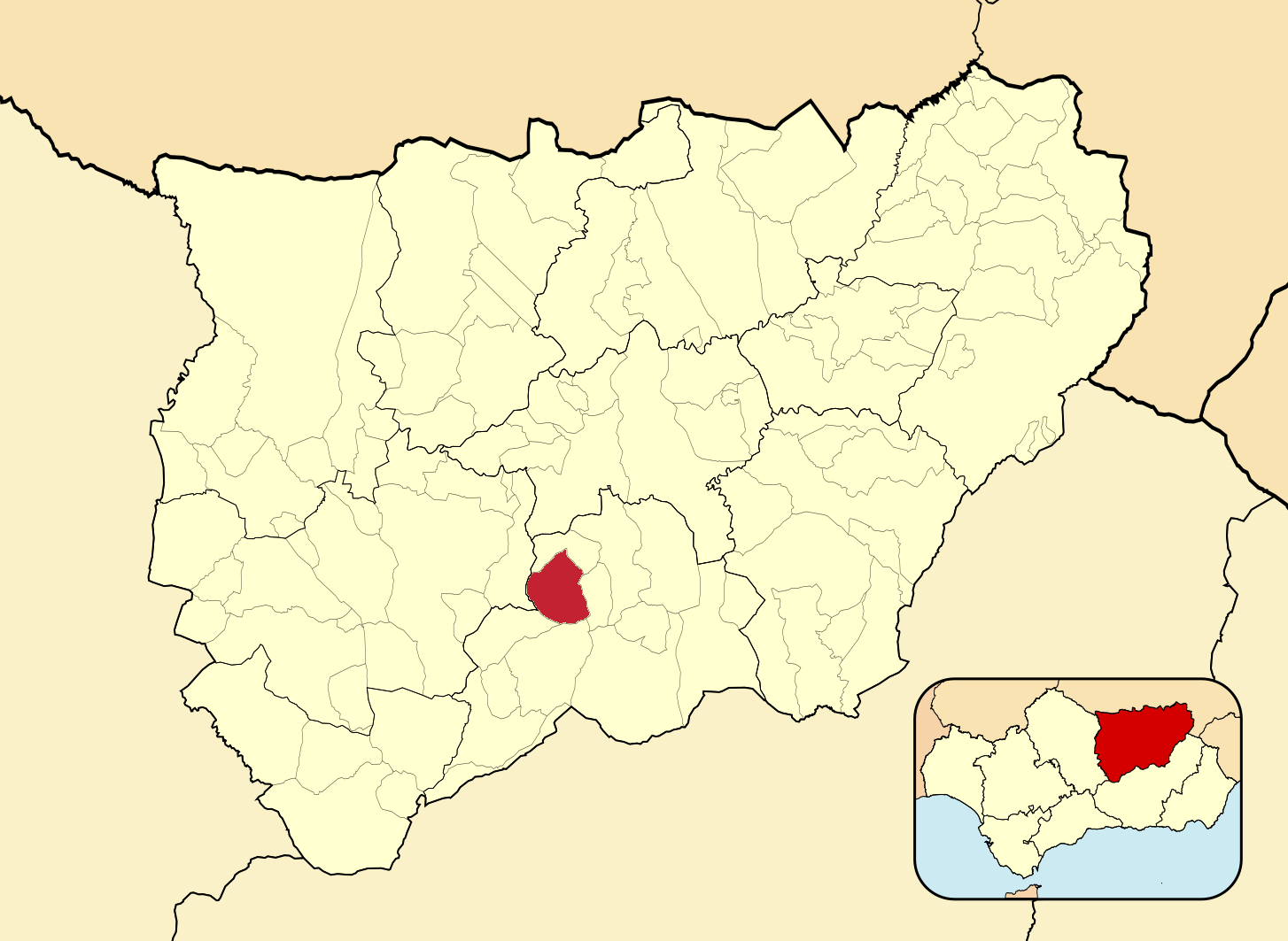 Муниципалитеты провинции Хаэн на административной карте провинции