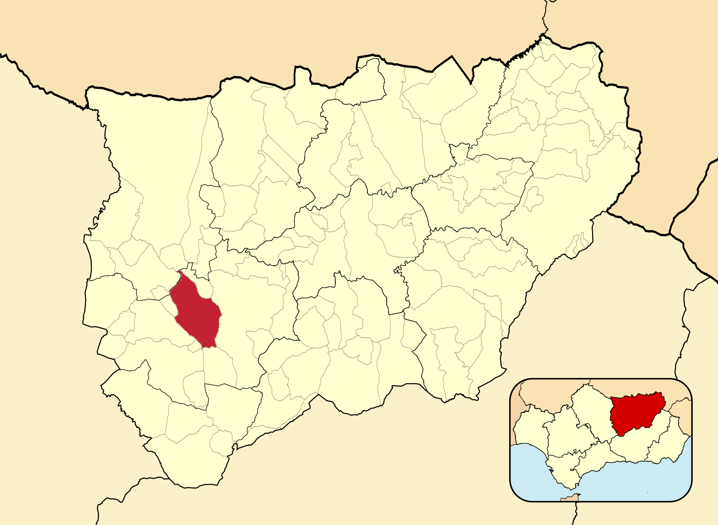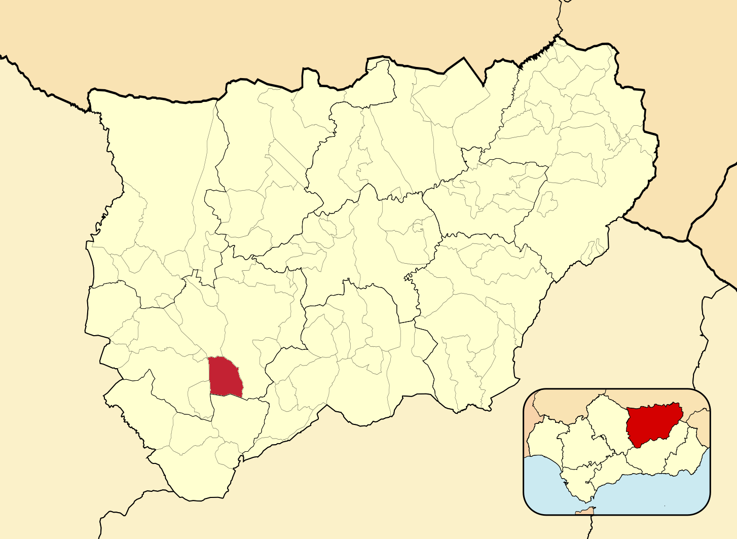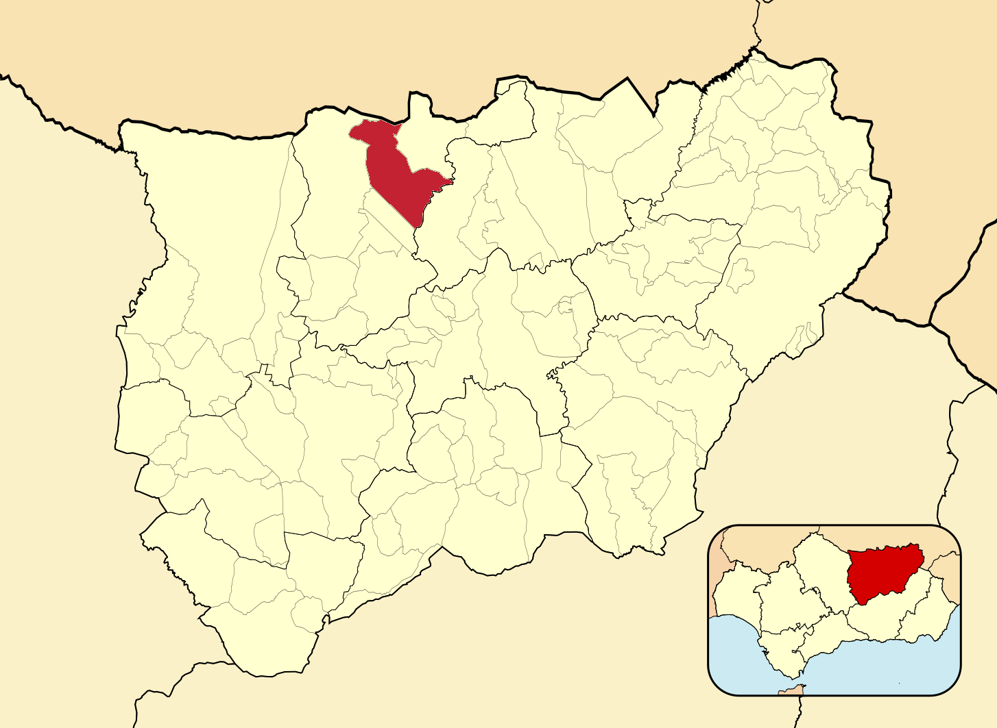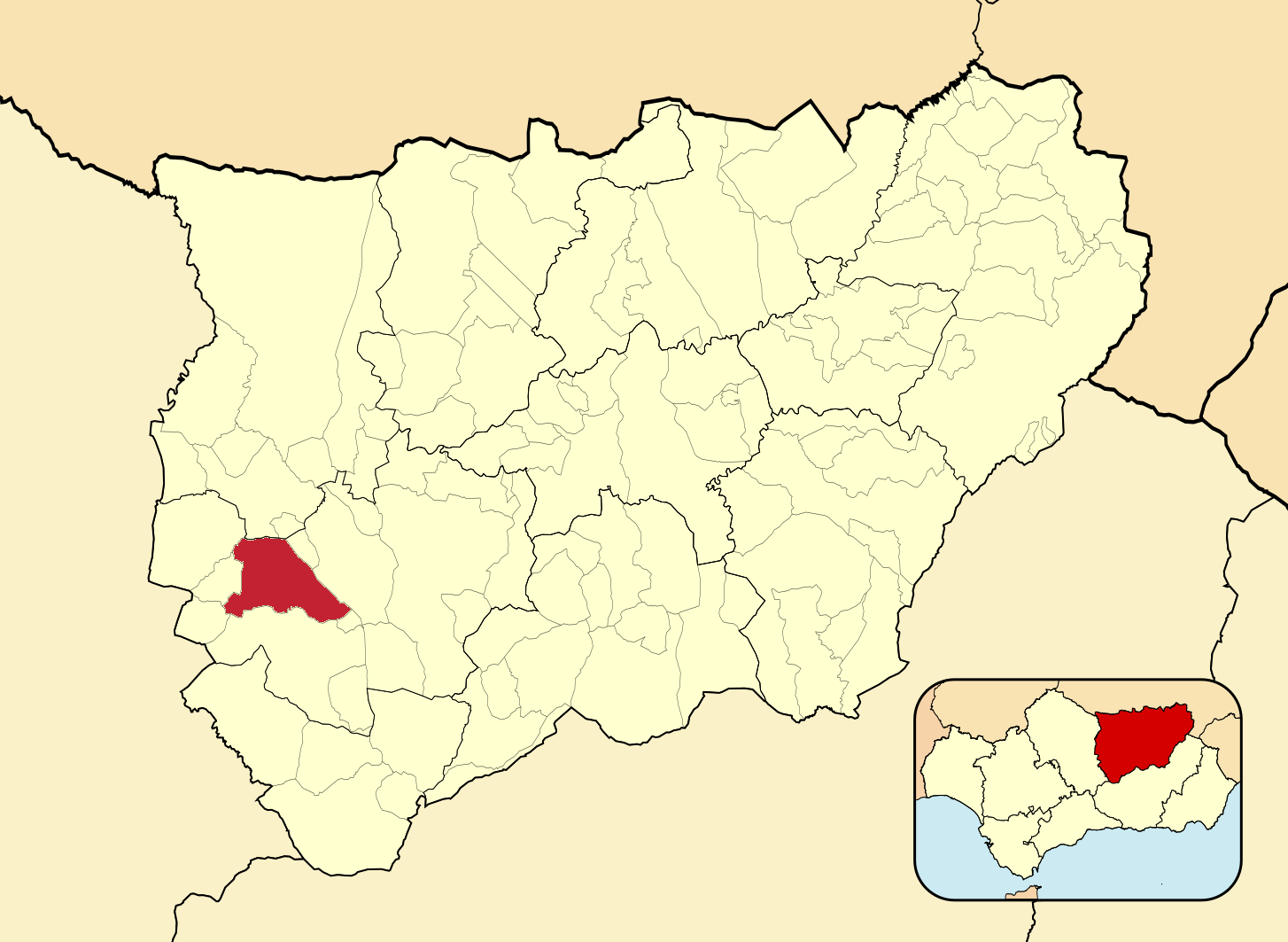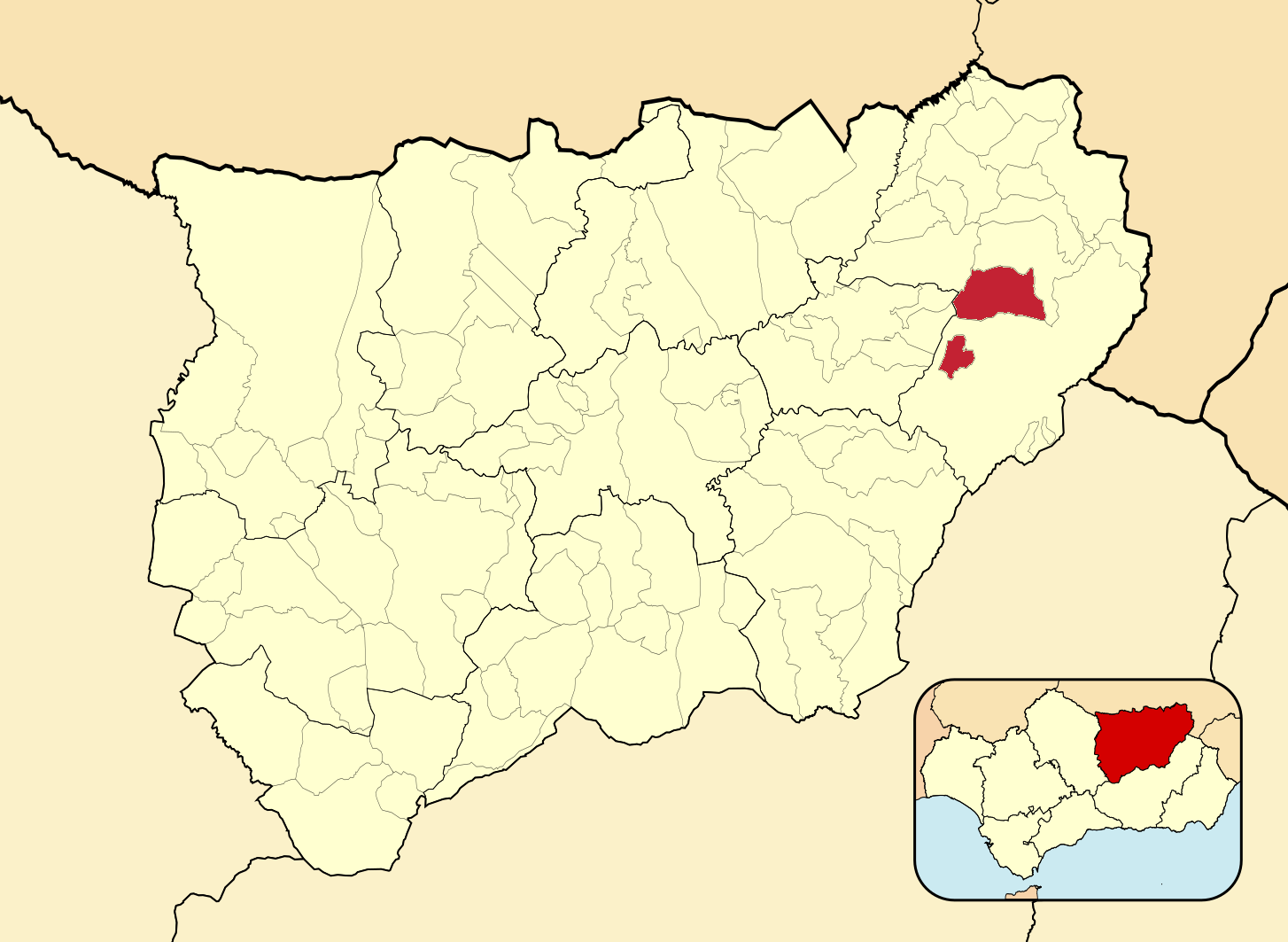 Муниципалитеты провинции Хаэн на административной карте провинции