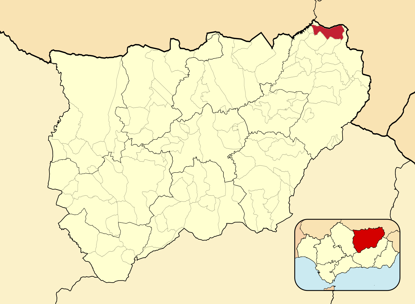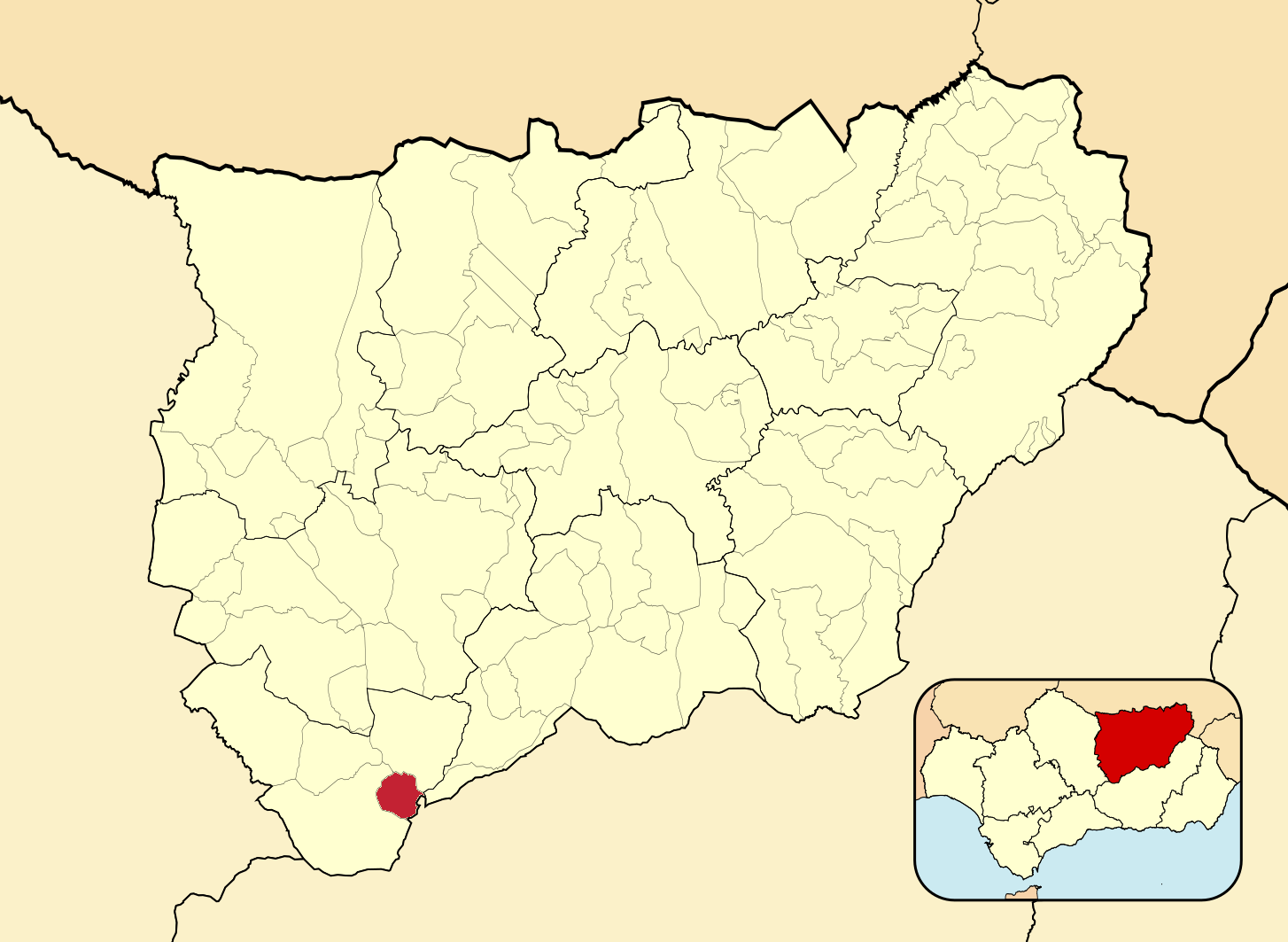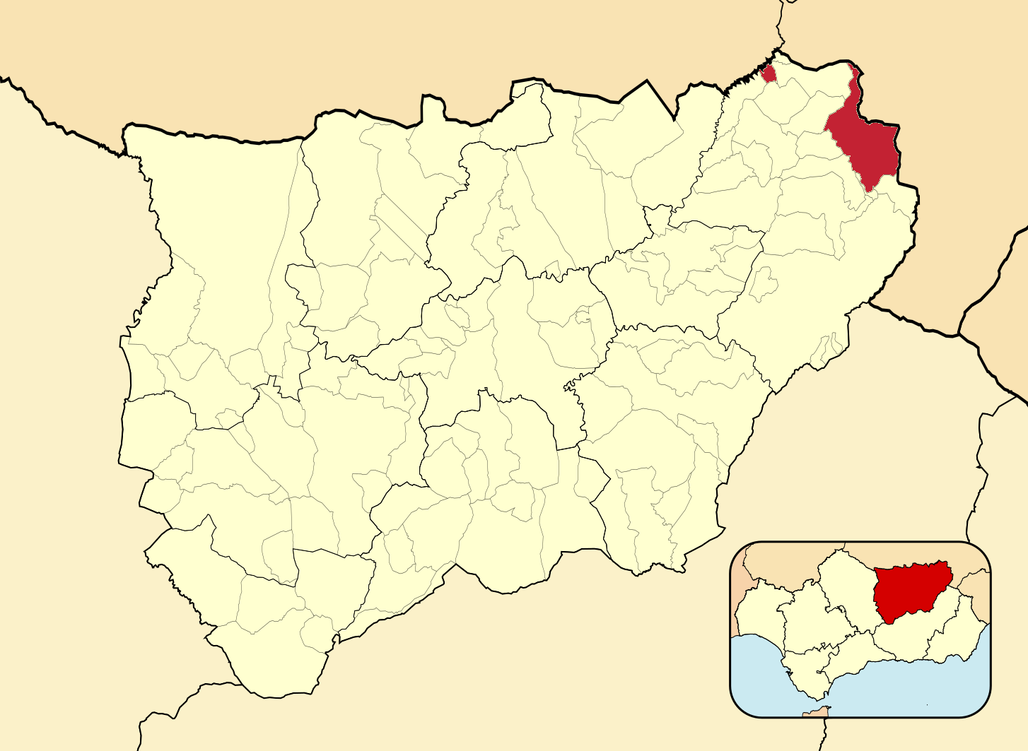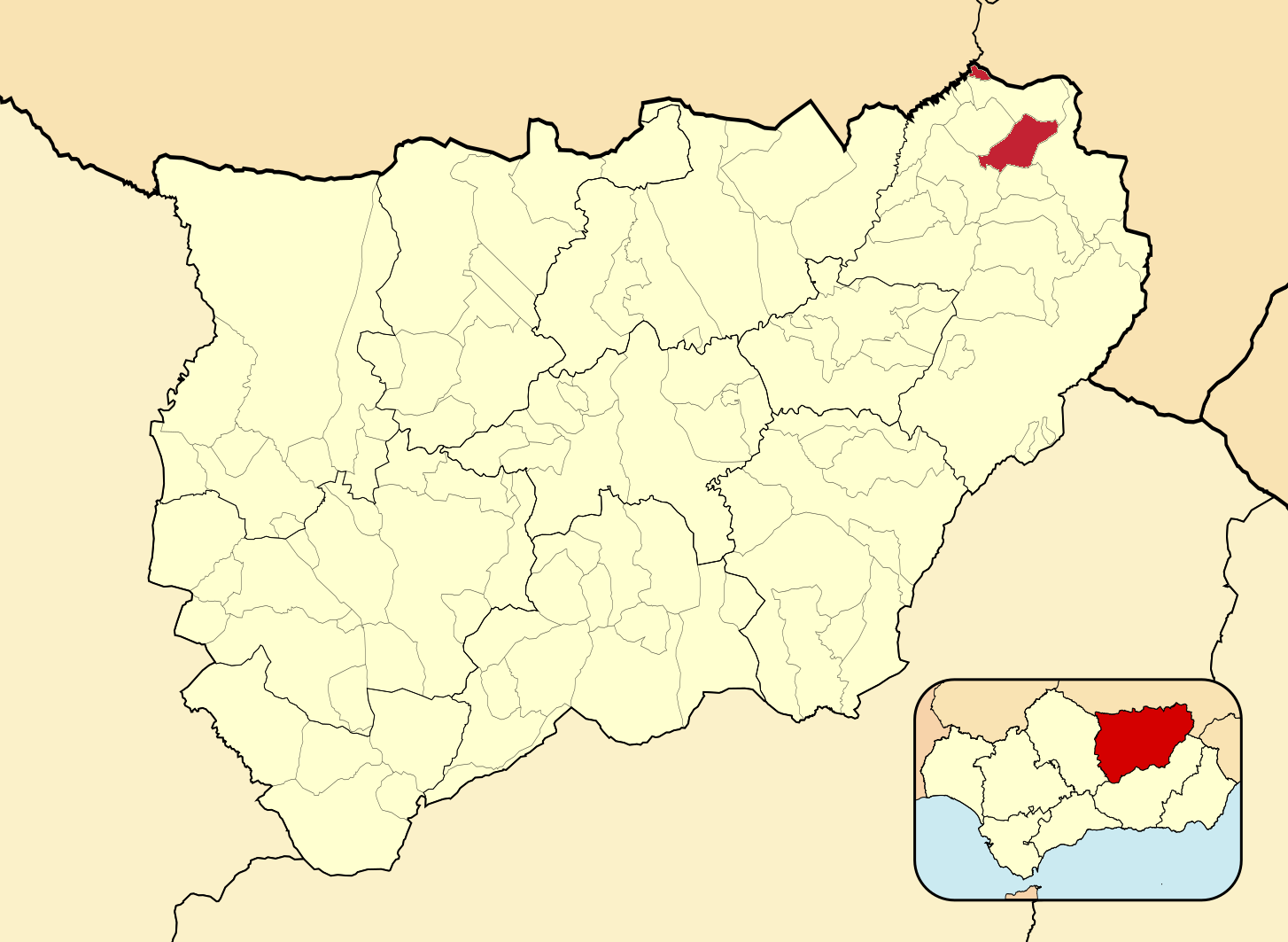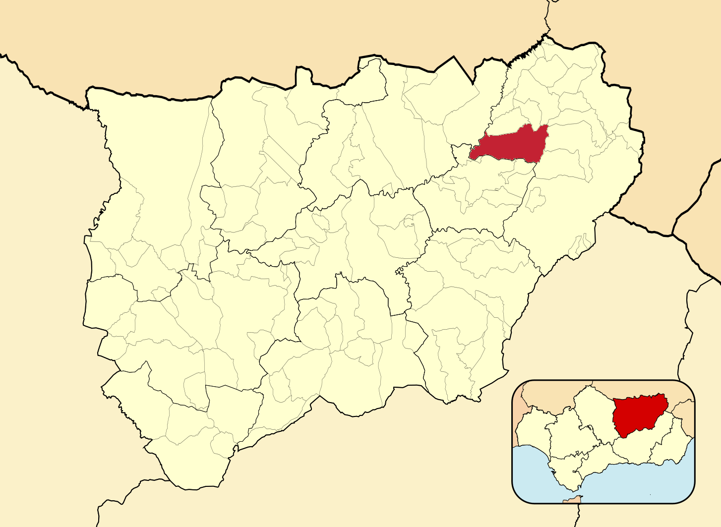 Муниципалитеты провинции Хаэн на административной карте провинции