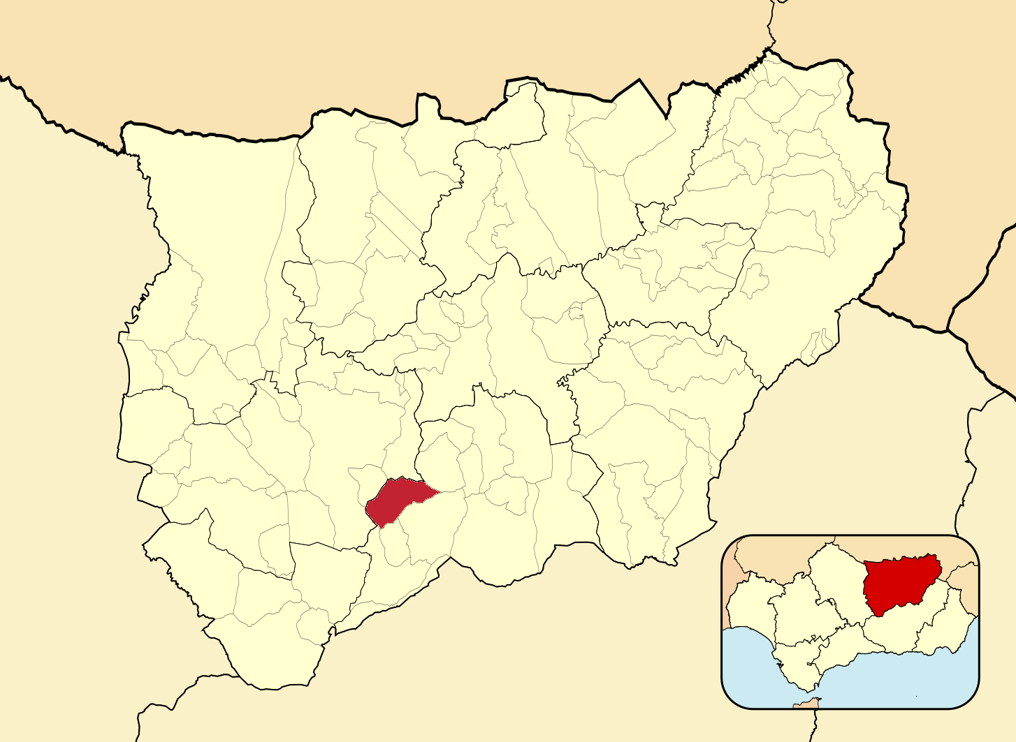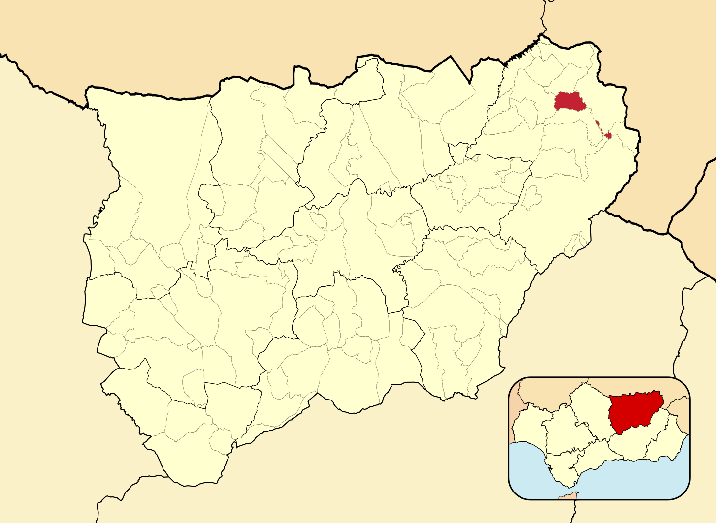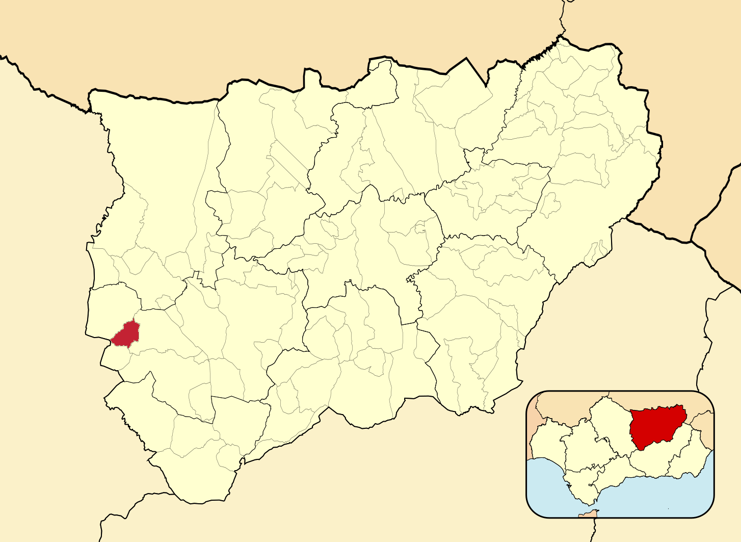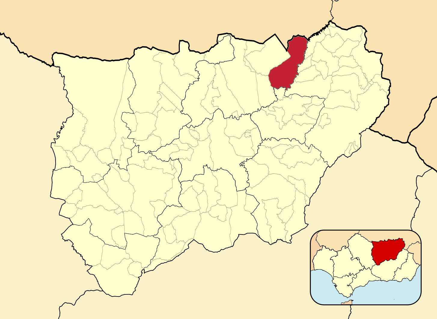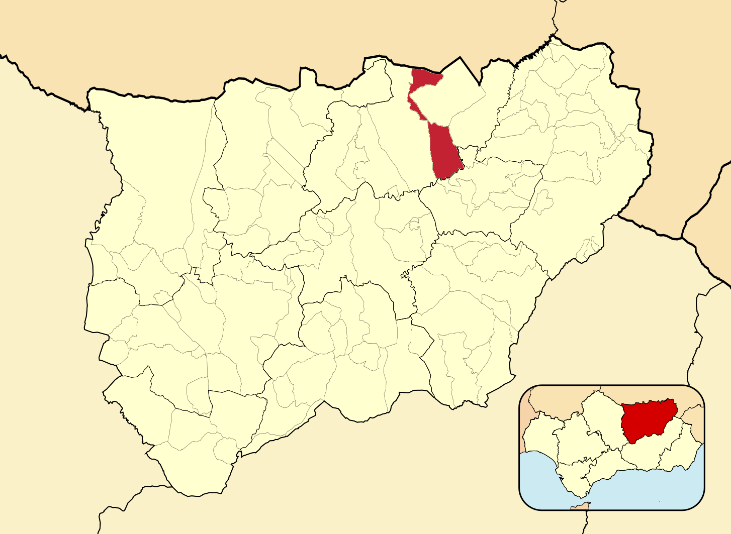Муниципалитеты провинции Хаэн на административной карте провинции