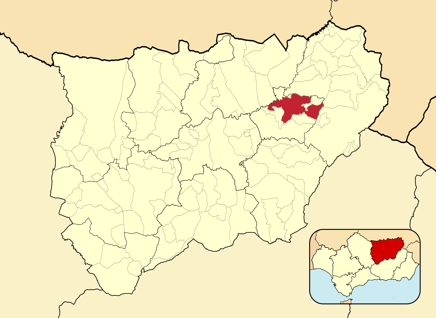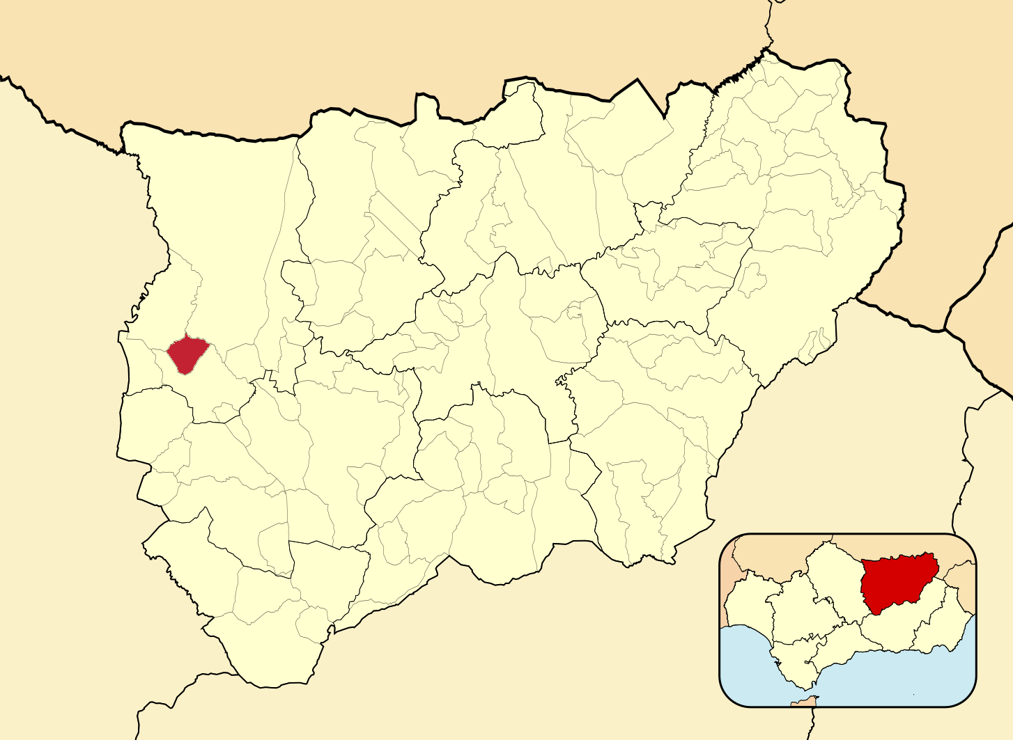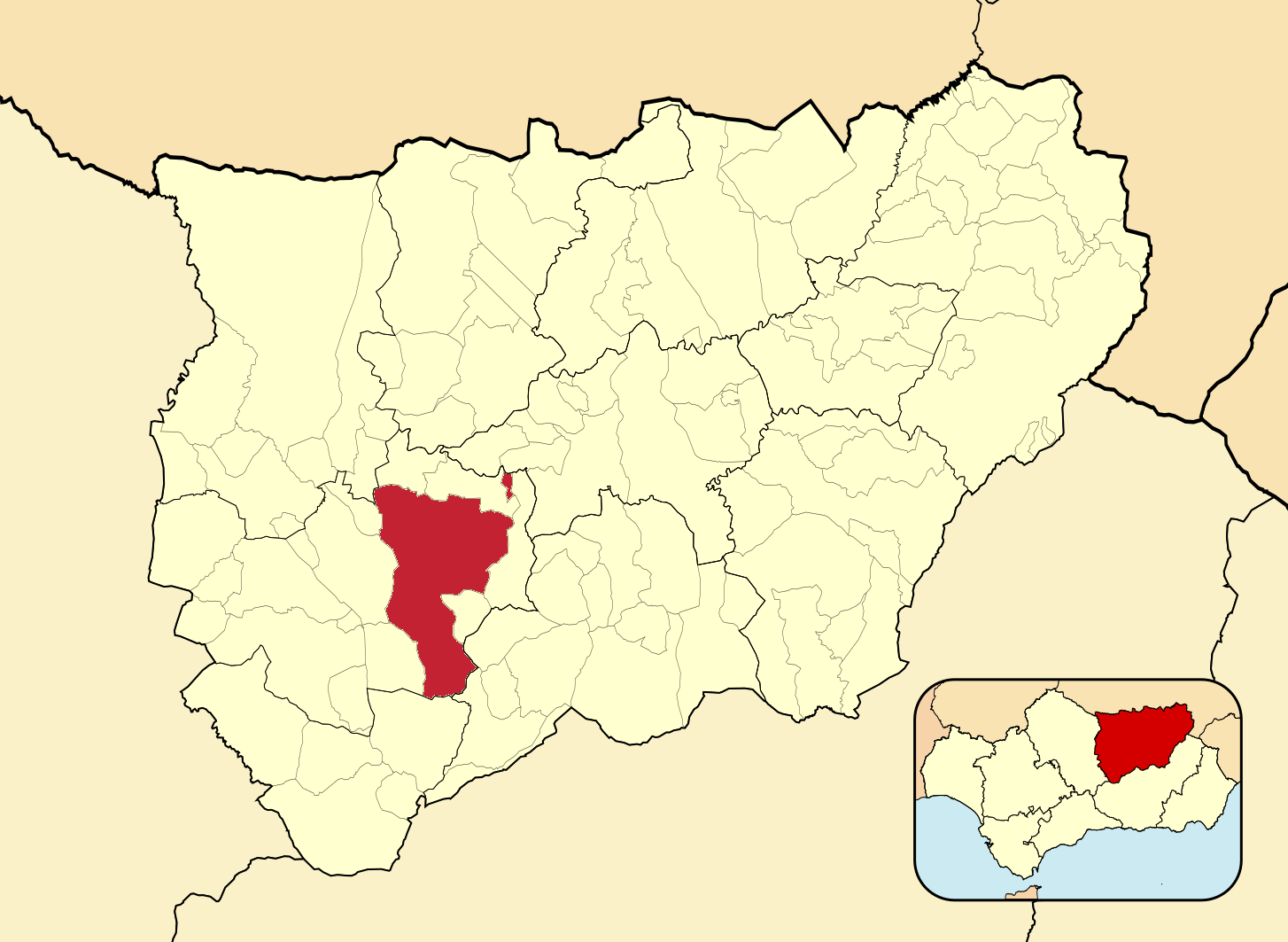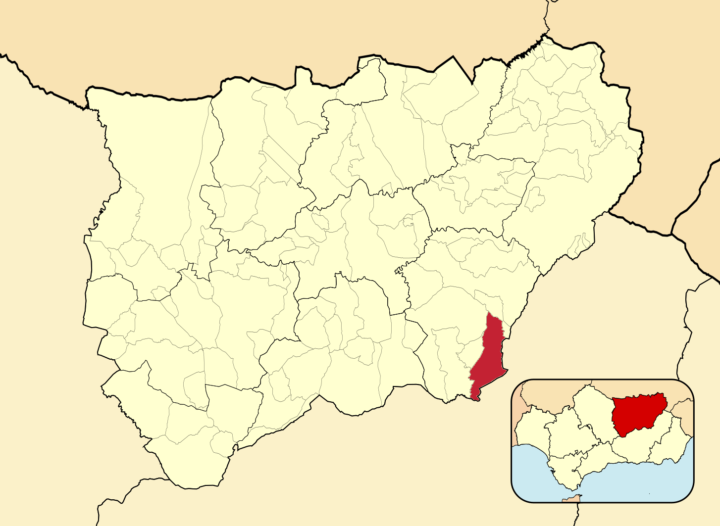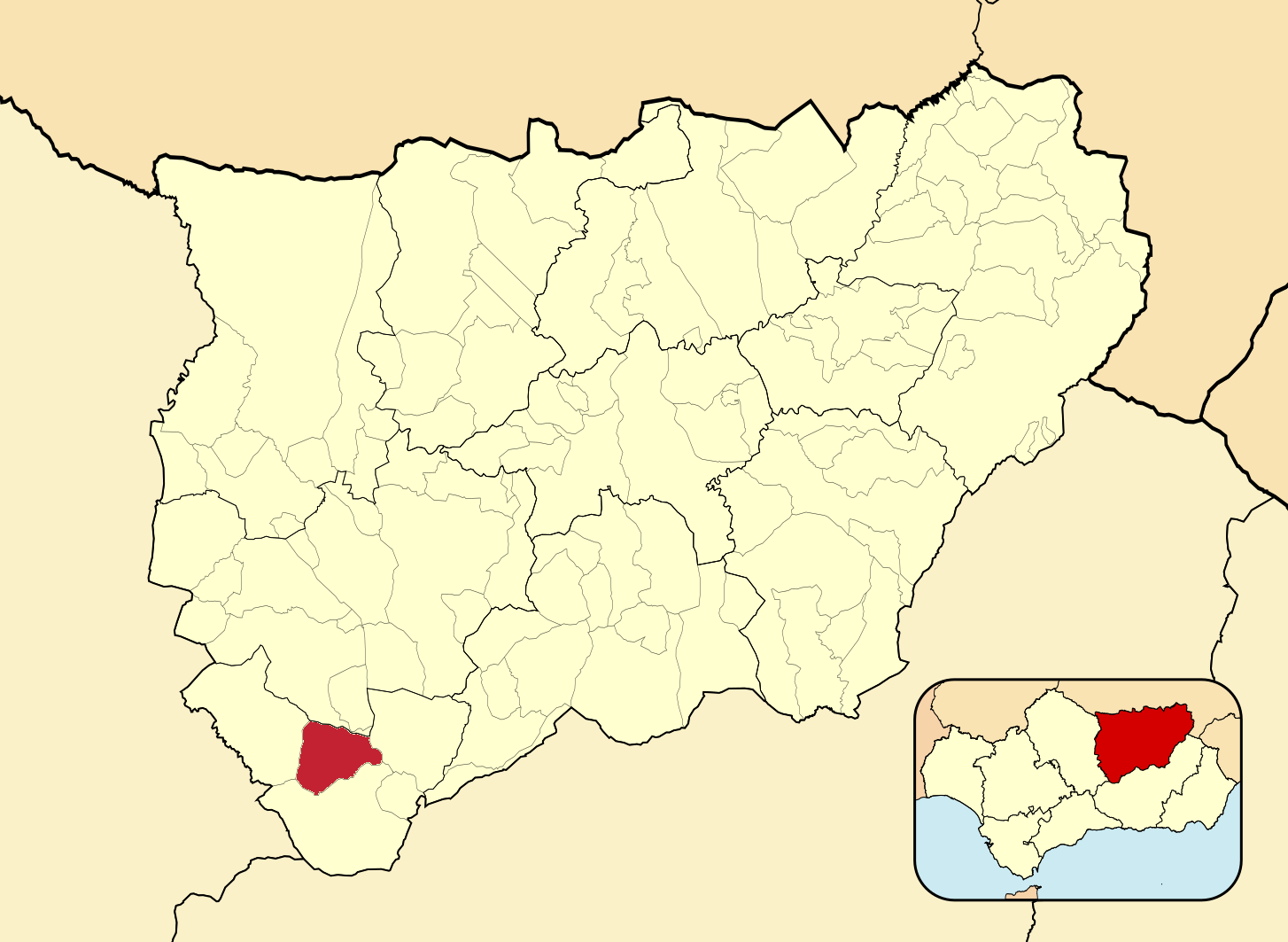 Муниципалитеты провинции Хаэн на административной карте провинции