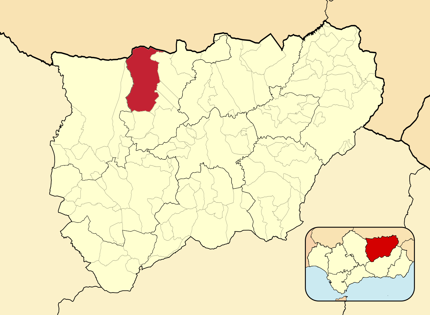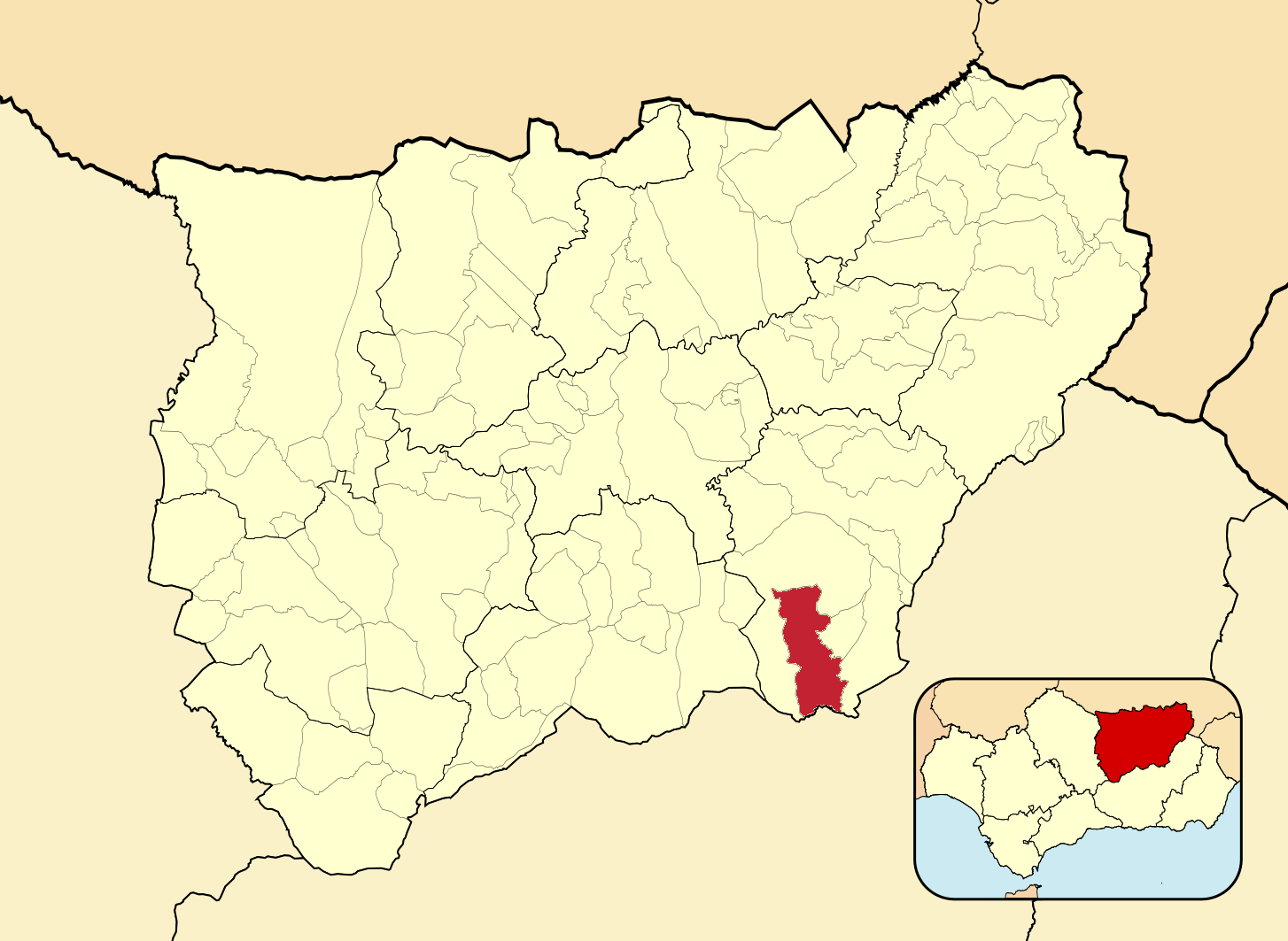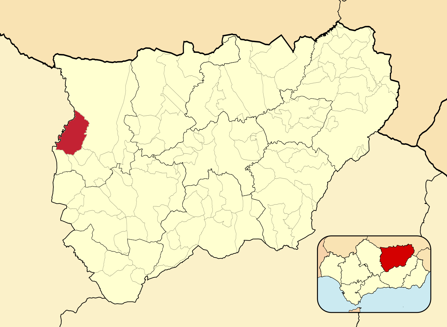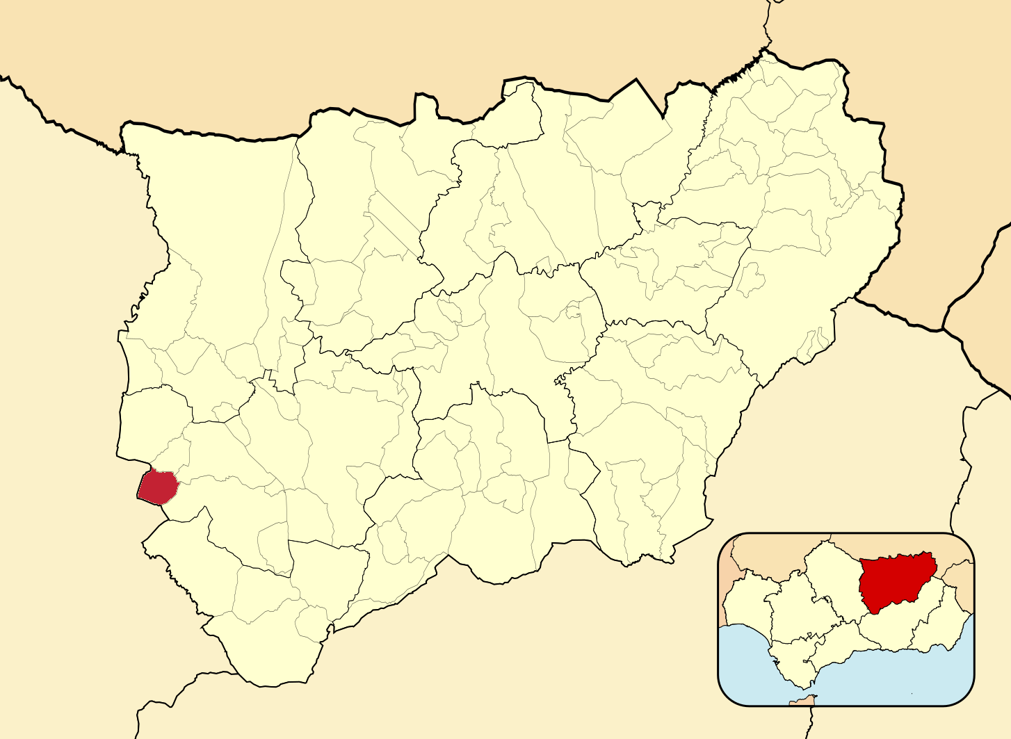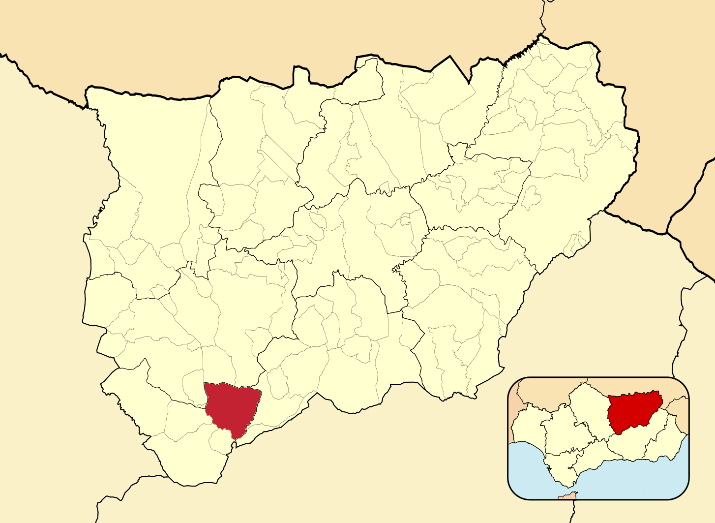 Муниципалитеты провинции Хаэн на административной карте провинции