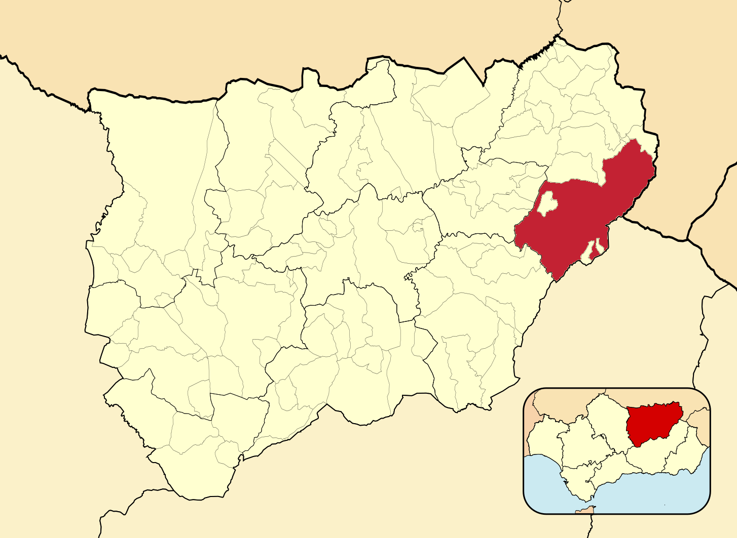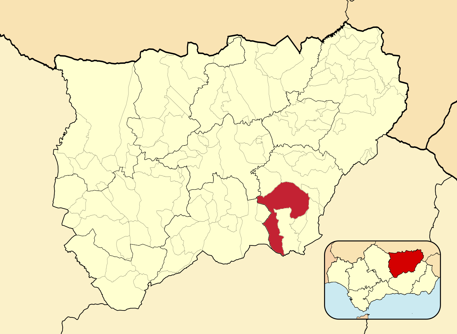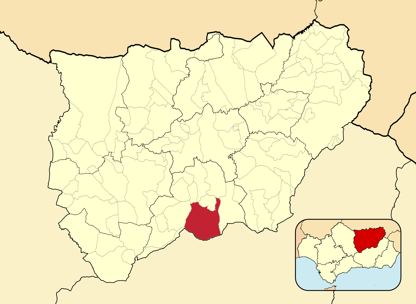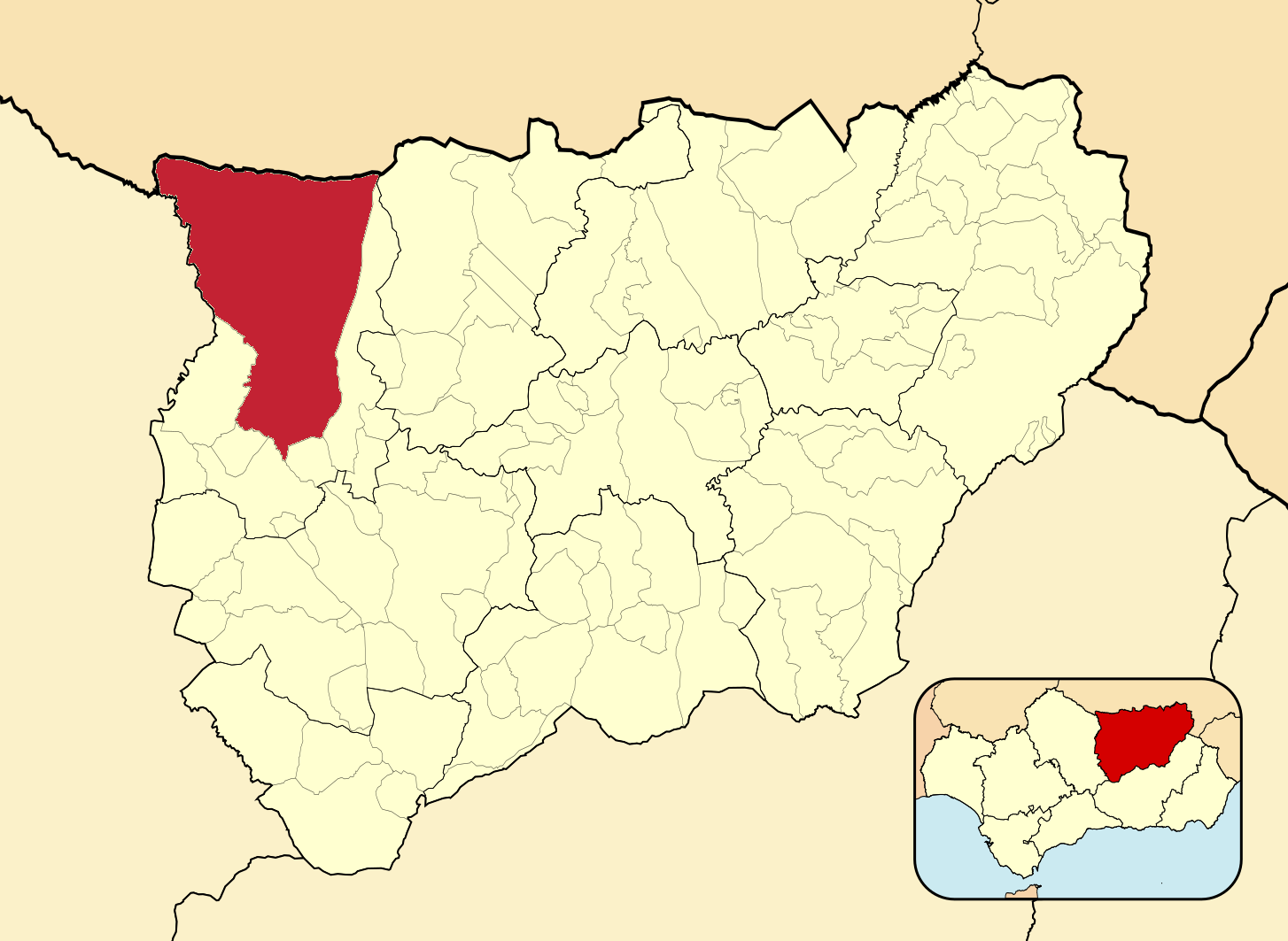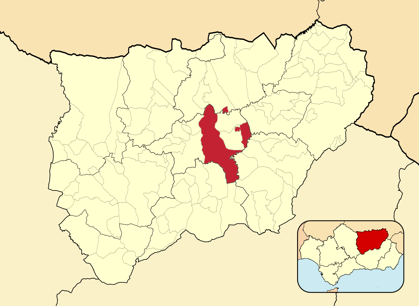 Муниципалитеты провинции Хаэн на административной карте провинции