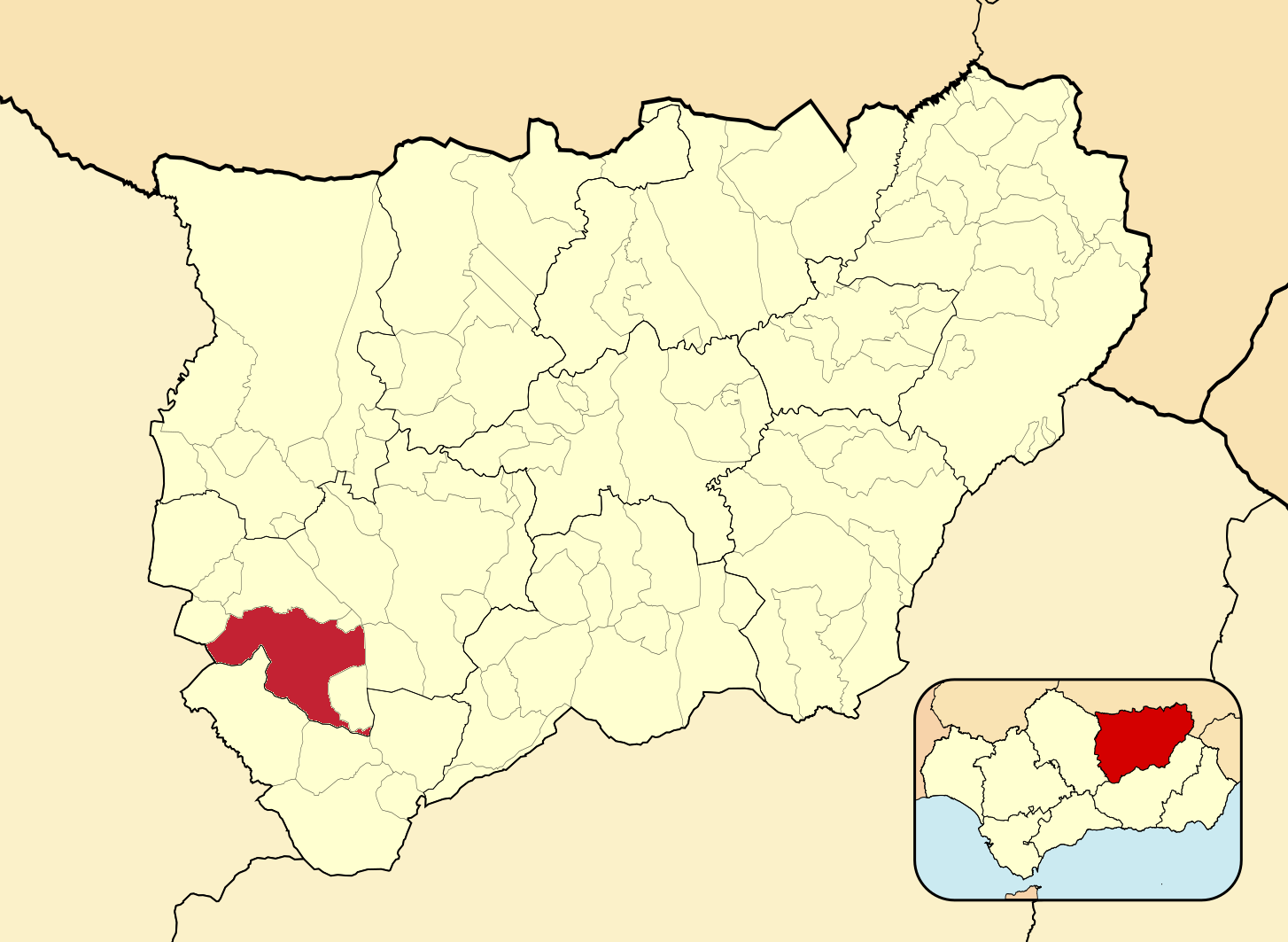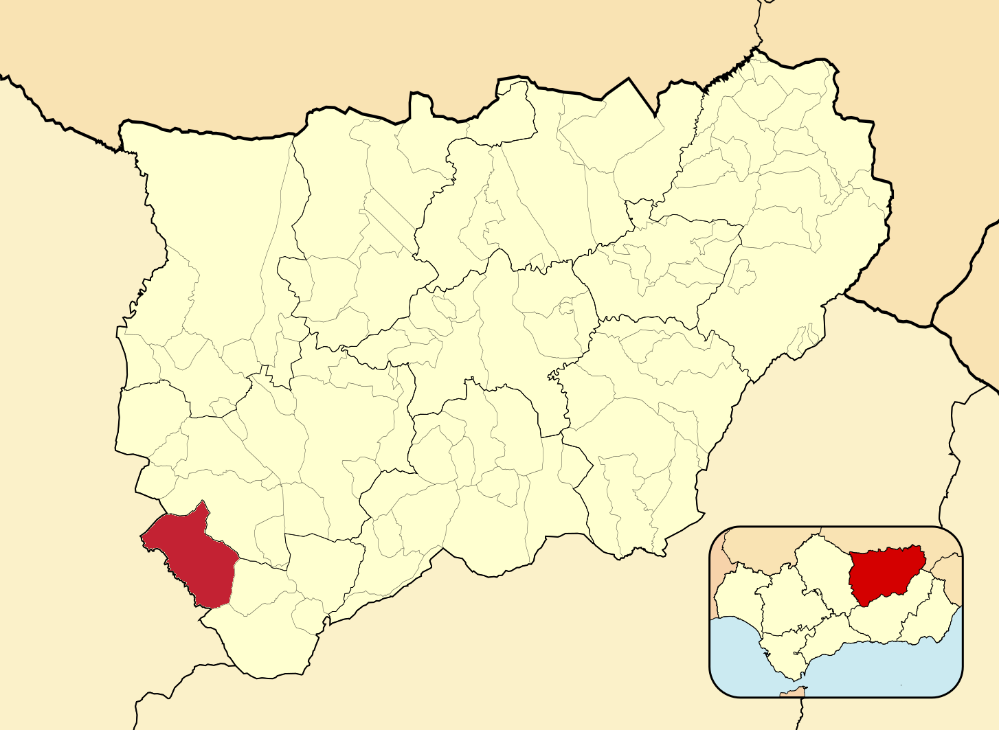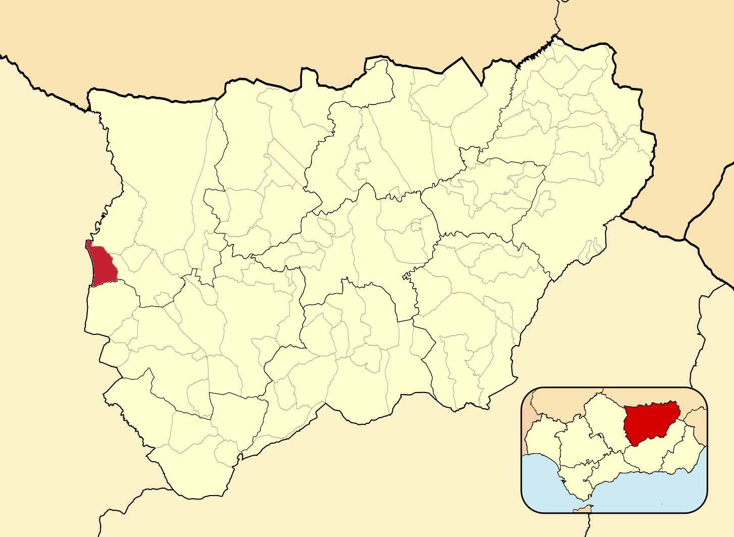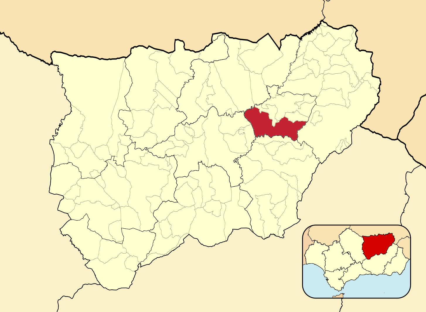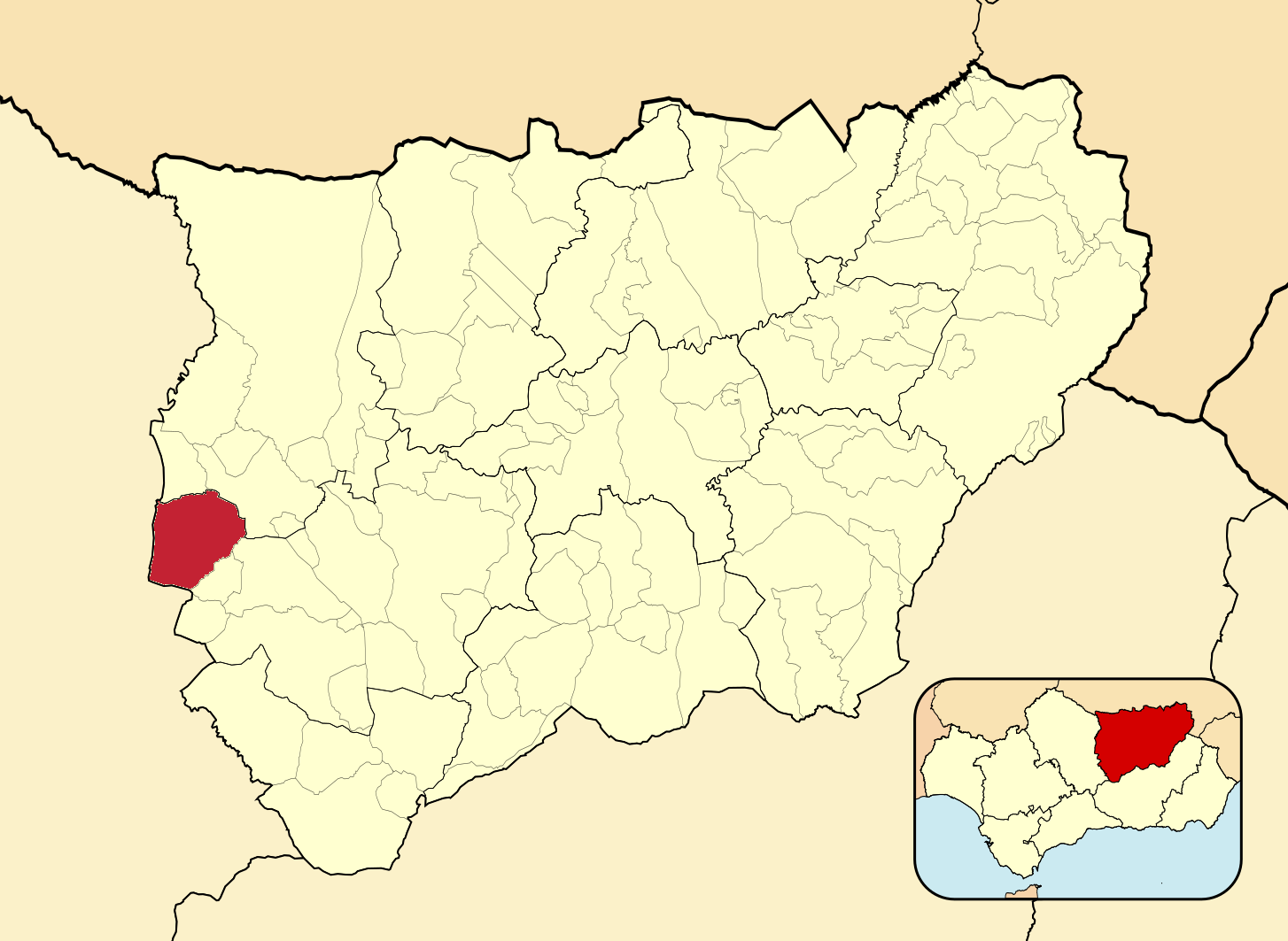 Муниципалитеты провинции Хаэн на административной карте провинции