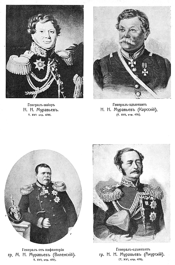 - граф Михаил Николаевич Муравьёв-Виленский (1796—1866) — генерал от инфантерии, губернатор Северо-Западного края, министр государственных имуществ.