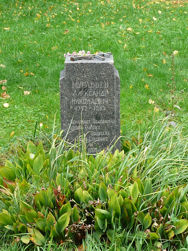 В 1930-е годы ограду с табличкой «Декабрист А. Н. Муравьёв» (вместе с соседним захоронением М. И. Муравьёва-Апостола) перенесли от северной стены мавзолея Волконских к могиле С. П. Трубецкого. В 1979 году над символической могилой А. Н. Муравьёва установили памятник-стелу[2].