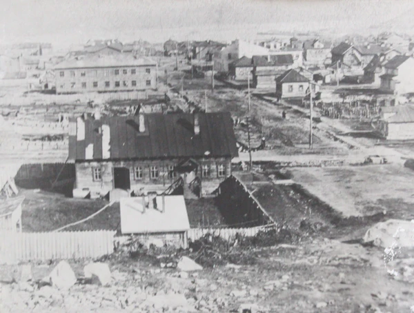 К началу 1920-х годов Мурманск насчитывал менее двух с половиной тысяч жителей и находился в упадке. Промышленность была представлена в основном кустарными артелями, рыбный промысел пришёл в упадок. Городской пейзаж составляли две-три улочки одноэтажных домов, перенаселённые рабочие бараки, беспорядочное скопление лачуг, приспособленные под жильё железнодорожные вагоны, брошенные интервентами «чемоданы» — дома из гофрированного железа с полукруглой крышей. Один из районов города получил прозвище «красная деревня» из-за теплушек красного цвета, приспособленных для жилья[26].