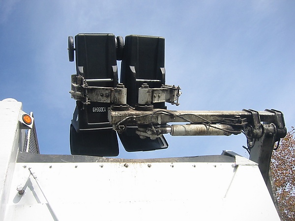 - Для вывоза крупногабаритного неконтейнеризованного мусора, непригодного для ручной загрузки, применяются пары погрузчик-самосвал либо мусоровозы, оборудованные грейферным захватом.