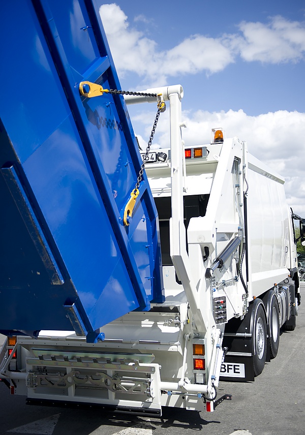Основная особенность мусорных машин — их способность к подъёму мусорных баков. Для этого у мусорной машины имеются специального рода гидравлические захваты, которыми цепляют мусорный бак, поднимают его и затем мусор ссыпают в кузов. Процедура подъёма мусора продолжается примерно одну минуту. После чего машина ставит бак обратно на землю.