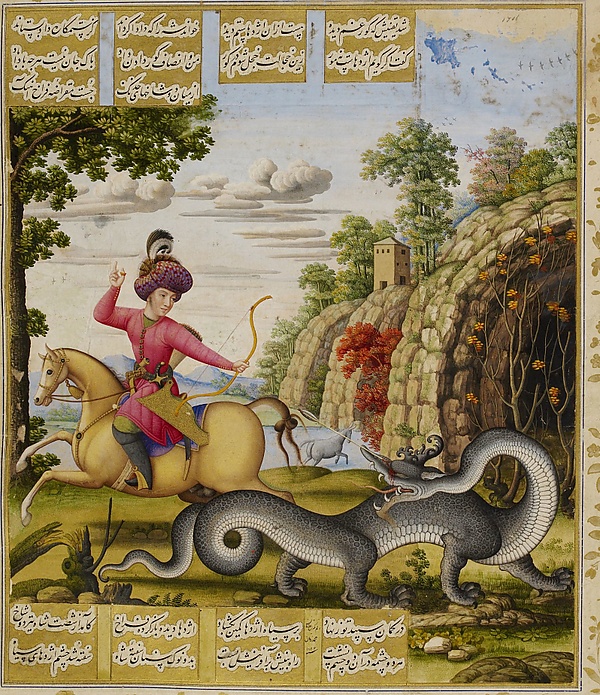 Наиболее крупными художественными проектами в XVII веке по прежнему были рукописи «Шахнаме» Фирдоуси. Каждый персидский шах стремился создать свой вариант этого эпоса, а то и несколько вариантов с участием разных художников. В «Шахнаме» от 1669 года (Музей Метрополитен, Нью-Йорк) можно видеть, как Мухаммад Заман изобразил сцену «Сиявуш показывает пленного Афрасиабу»: обычная придворная сцена с фонтанчиком и слугами, однако на заднем плане виден совершенно европейский пейзаж. Более того, от кипарисов падают тени, что абсолютно нетипично для персидской классической живописи. Мухаммаду Заману принадлежат три миниатюры в знаменитой рукописи «Хамсе» Низами, в иллюстрировании которой в 1539—1543 годах приняли участие лучшие художники прошлого — Султан Мухаммед, Мирза Али и другие, но которая так и не была в XVI веке завершена. Три оставленных для миниатюр листа Мухаммад Заман заполнил в 1675 году, и его работы резко отличаются по стилю от миниатюр его предшественников. В миниатюре «Бахрам Гур убивает дракона» вновь можно видеть вполне европейский пейзаж, на фоне которого Бахрам Гур расправляется не с типично китайским, а «европеизированным» драконом, так что вся сцена невольно напоминает картину с изображением св. Георгия. Такой эклектичный стиль характерен для большинства произведений Мухаммада Замана. Например, в рисунке «Принц верхом на коне со слугами и придворными» (посл. четверть XVII в., Британский музей, Лондон) также можно обнаружить сочетание вполне европейского стремления передать объём складок синих штанов слуги с типично персидским плоскостным, орнаментированным кафтаном принца.