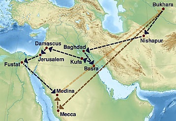 Когда ему было 16 лет, молодой человек с матерью и братом Ахмадом направился в паломничество в Мекку. Вскоре после посещения Мекки его мать и брат возвратились в Бухару без Мухаммада, который оставался в Мекке в течение следующих 4 лет. Он учился у самых знаменитых хадисоведов, затем посетил все известные в то время центры исламских наук. В Багдаде юноша восемь раз встречался с хадисоведом Ахмадом ибн Ханбалем, ходил пять раз в Басру, неоднократно побывал в городе Балхе (совр. Афганистан), и в Египте. В Дамаске он получал знания от Абу Мусхира, затем в течение 6 лет жил в Хиджазе. В Нишапуре имам аль-Бухари изучал хадисы у знаменитого хафиза Яхьи ибн Мунхари. Сам он отмечал, что записал и принял хадисы от 1800 учителей. Во время шестнадцатилетнего пребывания в Мечети Пророка в Медине он читал хадисы. Это было собрание и учение хадисов — достоверных передач о поступках и словах пророка Мухаммада и его сподвижников.