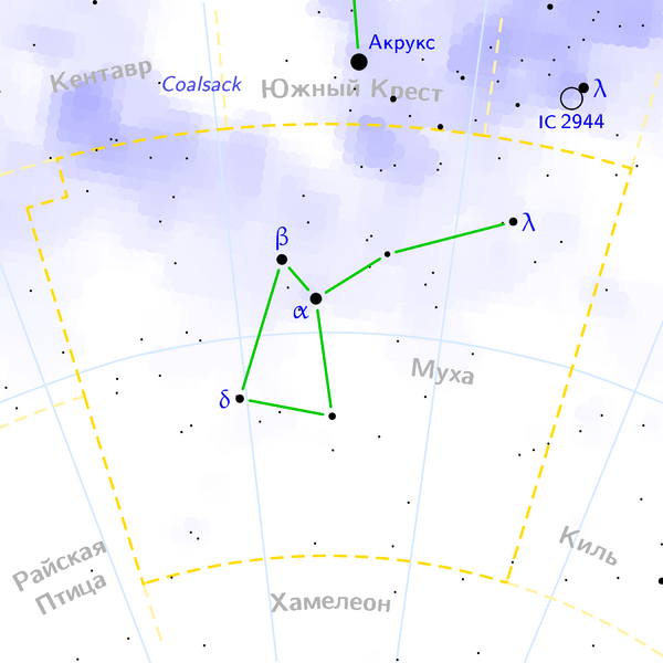 Му́ха (лат. Musca, Mus) — созвездие Южного полушария неба, лежащее в Млечном пути южнее созвездия Южный Крест. Занимает на небе площадь 138,4 кв. градуса, содержит 60 звёзд, видимых невооружённым глазом.