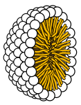 Структура мицеллы такова, что внешняя поверхность гидрофильна (притягивается к воде), а внутрення часть липофильна (притягивает и растворяет жиры).