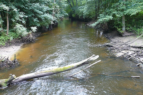 Впадает в Одру, по которой здесь проходит граница с Германией чуть ниже деревни Хлевице[3].