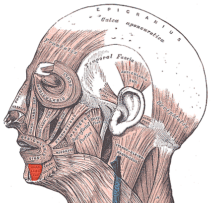 Оттягивает нижнюю губу вниз и несколько латерально, что в частности наблюдается при выражении отвращения[2].
