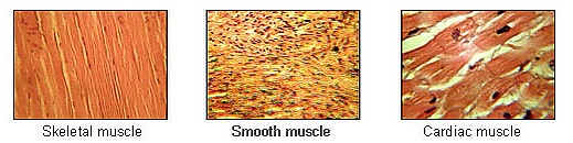 Из гладких мышц (гладкой мышечной ткани) состоят внутренние органы, в частности, стенки пищевода, кровеносные сосуды, дыхательные пути и половые органы. Гладкие мышцы отличаются так называемым «автоматизмом», то есть способностью приходить в состояние возбуждения при отсутствии внешних раздражителей. И если сокращение скелетных мышц продолжается около 0,1 с, то более медленные сокращения гладких мышц продолжается от 3 до 180 с. В пищеводе, половых органах и мочевом канале возбуждение передаётся от одной мышечной клетки к следующей. Что касается сокращения гладких мышц, находящихся в стенках кровеносных сосудов и в радужной оболочке глаза, то оно не переносится с клетки на клетку; к гладким мышцам подходят симпатические и парасимпатические нервы автономной нервной системы.