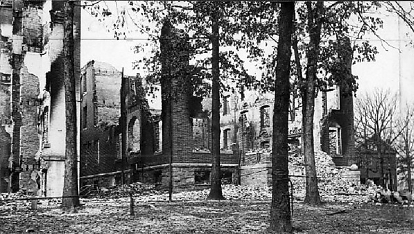 29 ноября 1912 года, в День благодарения, на чердаке нового здания администрации начался пожар; из-за сильного ветра, сгорели почти все здания колледжа. Тем не менее, подавляющее число студентов вернулось в колледж после каникул, и жило у местного населения, пока не было отстроено новое общежитие. Замену зданию администрации построили только в 1940-х годах.