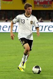 То́мас Мю́ллер (нем. Thomas Müller, немецкое произношение: [ˈtoːmas ˈmʏlɐ]; род. 13 сентября 1989, Вайльхайм, Бавария)[8] — немецкий футболист, выступающий за канадский клуб «Ванкувер Уайткэпс». Может играть на разных позициях — нападающий, атакующий полузащитник. Самый титулованный немецкий футболист в истории[9].