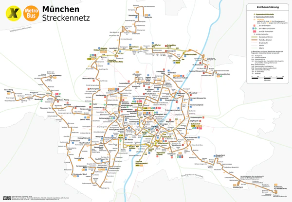 Мюнхенская автобусная сеть (нем. Bussystem München) состоит из 66 дневных и 9 ночных маршрутов, общей длиной 456 км с 915 остановками и автовокзалами. Для их обслуживания используются 3 маленьких, 182 нормальных и 246 сочлененных автобуса, в общей сложности 431 машин. 23 км маршрутов имеют собственную колею для автобусов. Среднее расстояние между остановками 498 метров и средняя скорость в сети 18,6 км/ч[2].