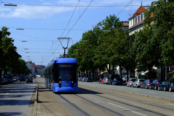 Мюнхенский трамвай (нем. Straßenbahn München) состоит из 13 дневных и 4 ночных линий, общей длиной 79 км, с 164 остановками. Используются 95 поездов типов [[Мюнхенский трамвай #Тип P 3�|P 3.16]], R 2.2, R 3.3 и S 1.4. Среднее расстояние между остановками 485 метров и средняя скорость в сети 20 км/ч[2].